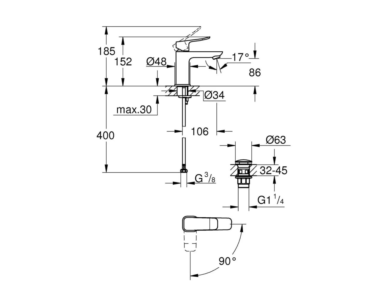 Характеристики Змішувач Grohe QuickFix 1018612430