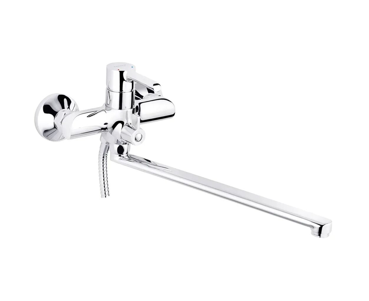 для ванни, одноважільний, настінний, латунь, поворотний, Довжина виливу - 32 см, Підключення - 1/2", Колір - сріблястий, Німеччина