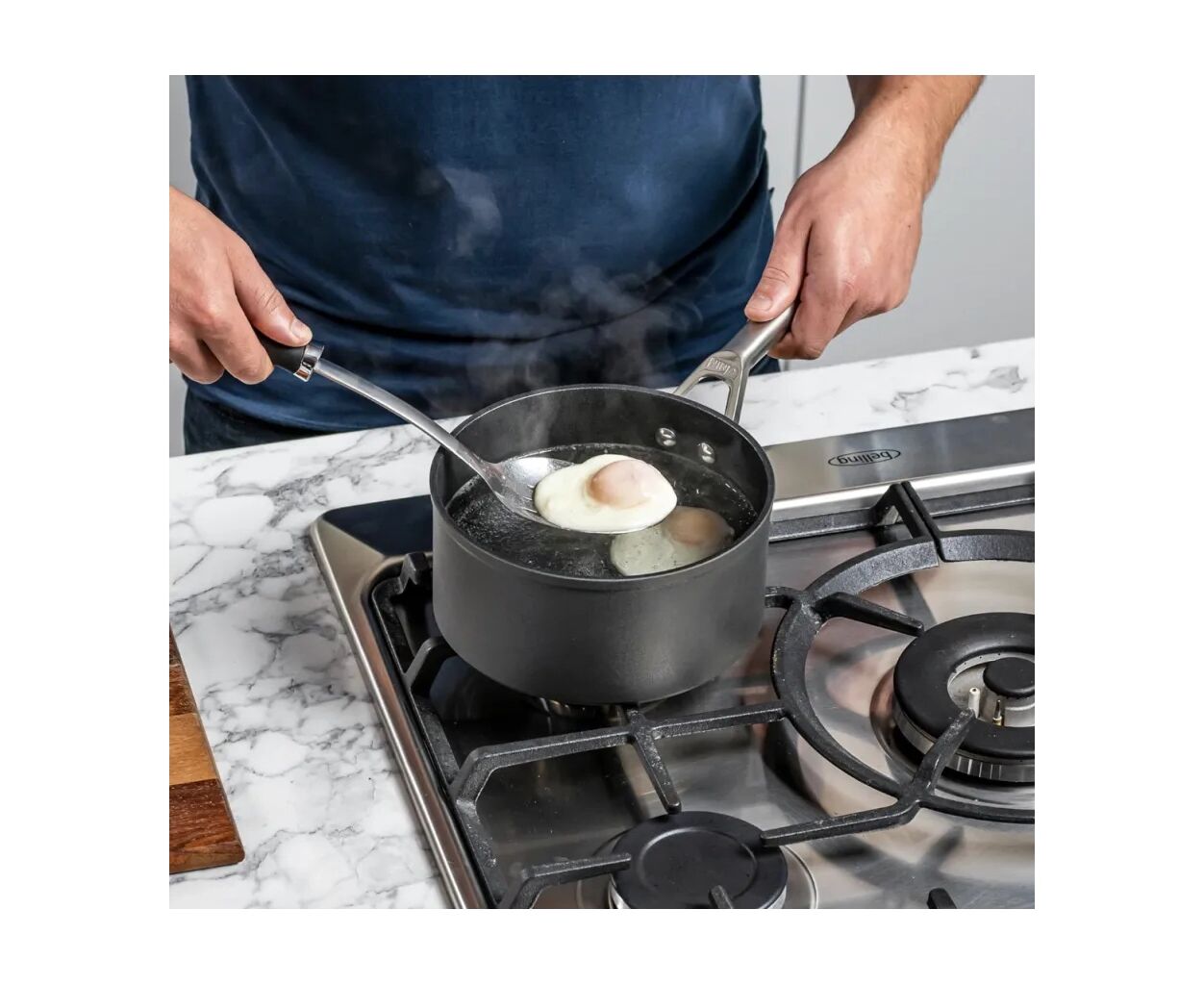 • Матеріал: Виготовлений з міцного кованого алюмінію з твердо-анодованим покриттям, що забезпечує швидкий та рівномірний розподіл тепла без "гарячих точок"