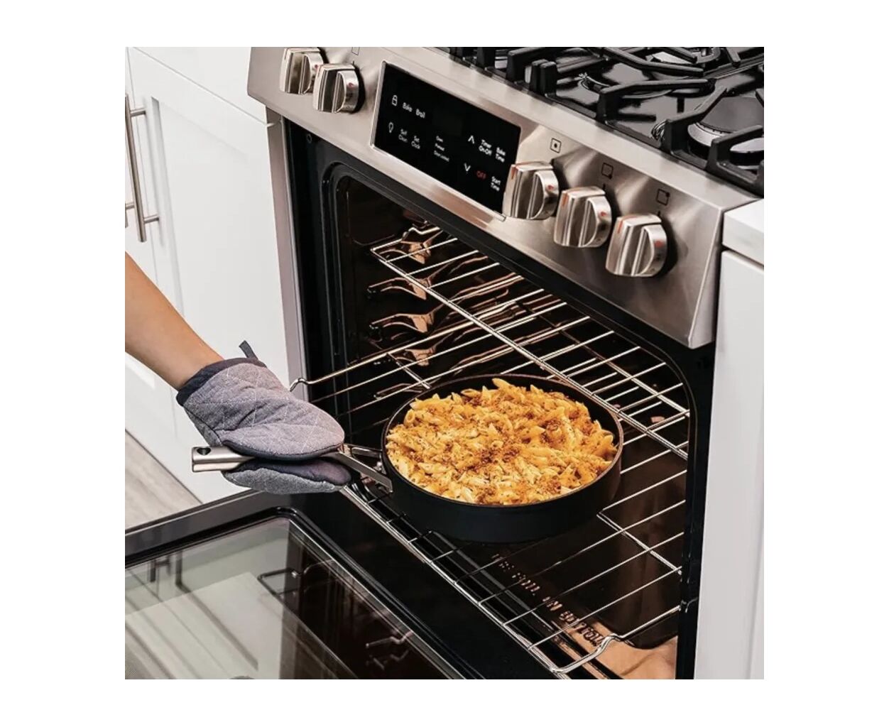 • Термостійкість до 260°C: Ви можете безпечно використовувати сотейник в духовці при температурі до 260°C. Починайте готувати страву на плиті, а потім легко переміщуйте її в духовку для запікання, доведення до готовності або отримання хрусткої скоринки