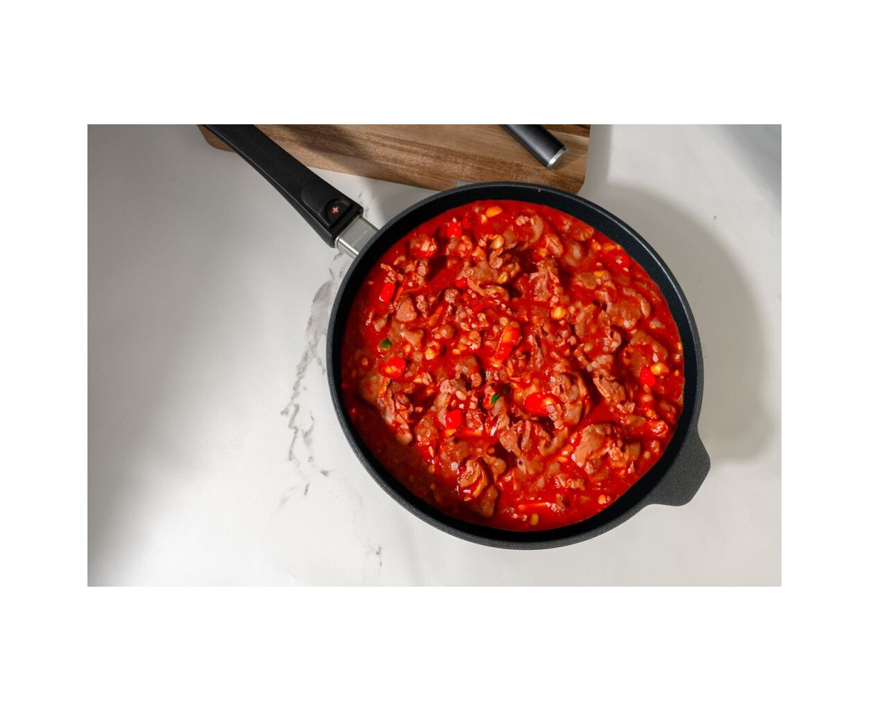 Однією з ключових особливостей цього сотейника є його антипригарне внутрішнє покриття, яке забезпечує легке приготування без прилипання їжі. Це дозволяє зменшити використання олії або жиру, що робить страви не тільки смачними, але й здоровішими. Крім того, антипригарне покриття значно полегшує процес очищення, що робить цей сотейник практичним вибором для щоденного використання.