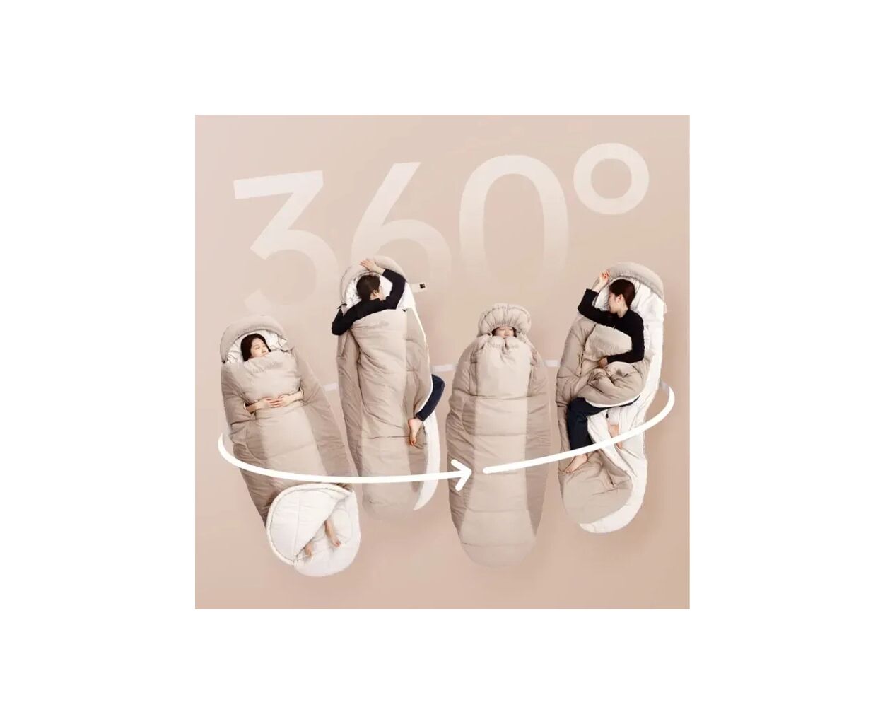 Капюшон оснащений регульованою утяжкою для захисту голови від протягів, ширина капюшона — 75 см. У складеному вигляді спальник займає мінімум місця — Ø25 x 48 см. Виріб постачається у чохлі з утяжками для компактного транспортування.