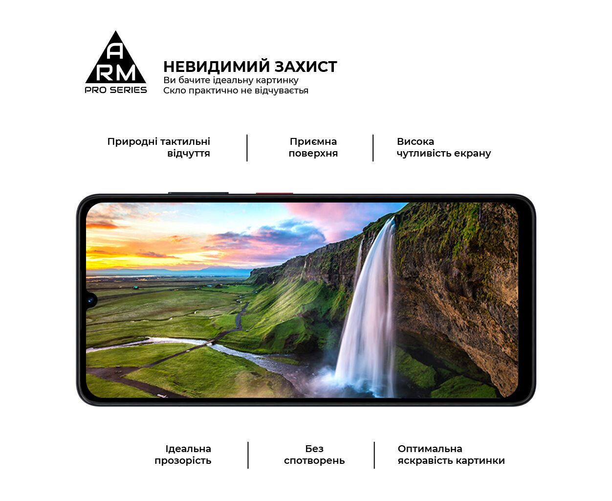 Захисне скло Armorstandart Pro Series має оптимальні габарити та товщину на 0,3 мм. Передбачено вирізи під усі датчики, камери та роз'єми.