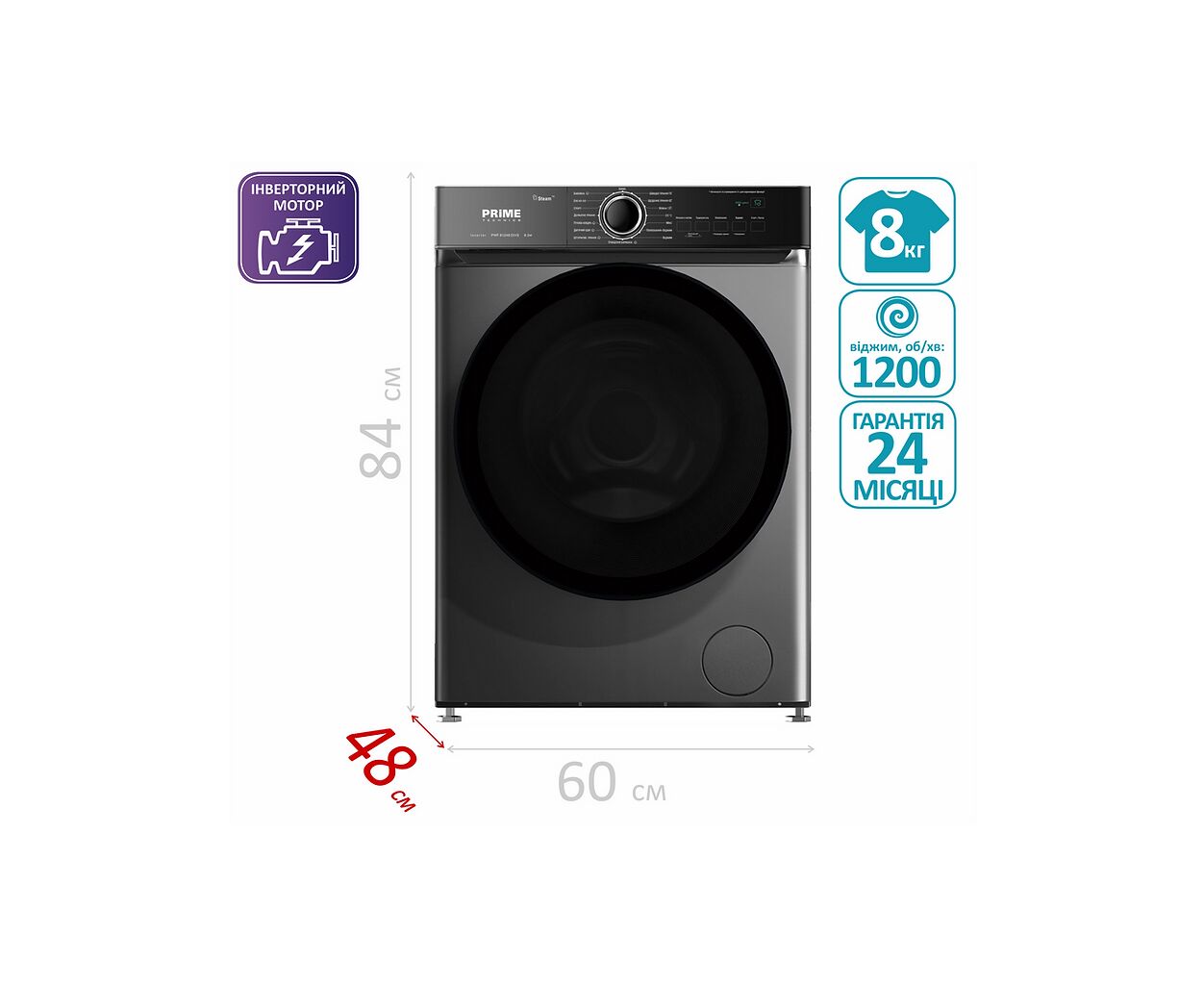 Опис Пральна машина PRIME Technics PWF 81248 DIVS