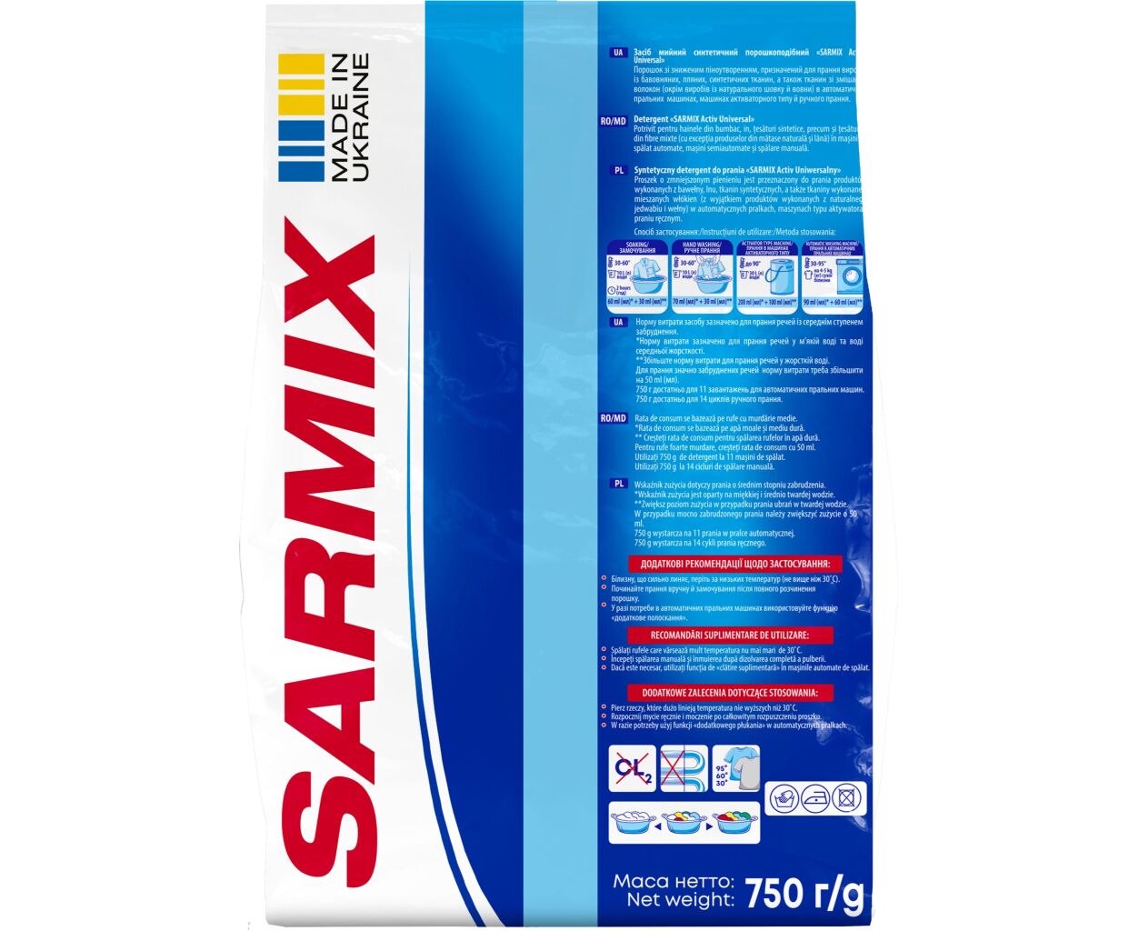 Пральний порошок Sarmix Active Universal для всіх типів прання 750 г (4820268104106)
