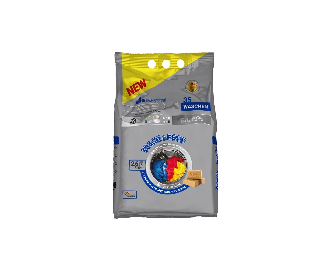 Пральний порошок Wash&Free Universal зі стружкою господарського мила 2.6 кг (4260637723680)