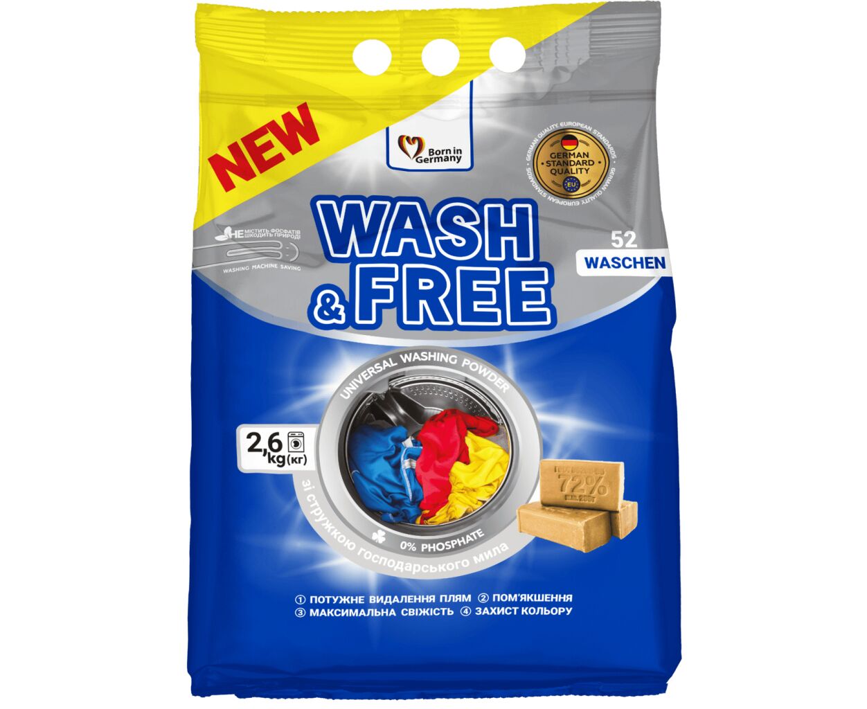 Опис Пральний порошок Wash&Free Universal зі стружкою господарського мила 2.6 кг (4260637723680)