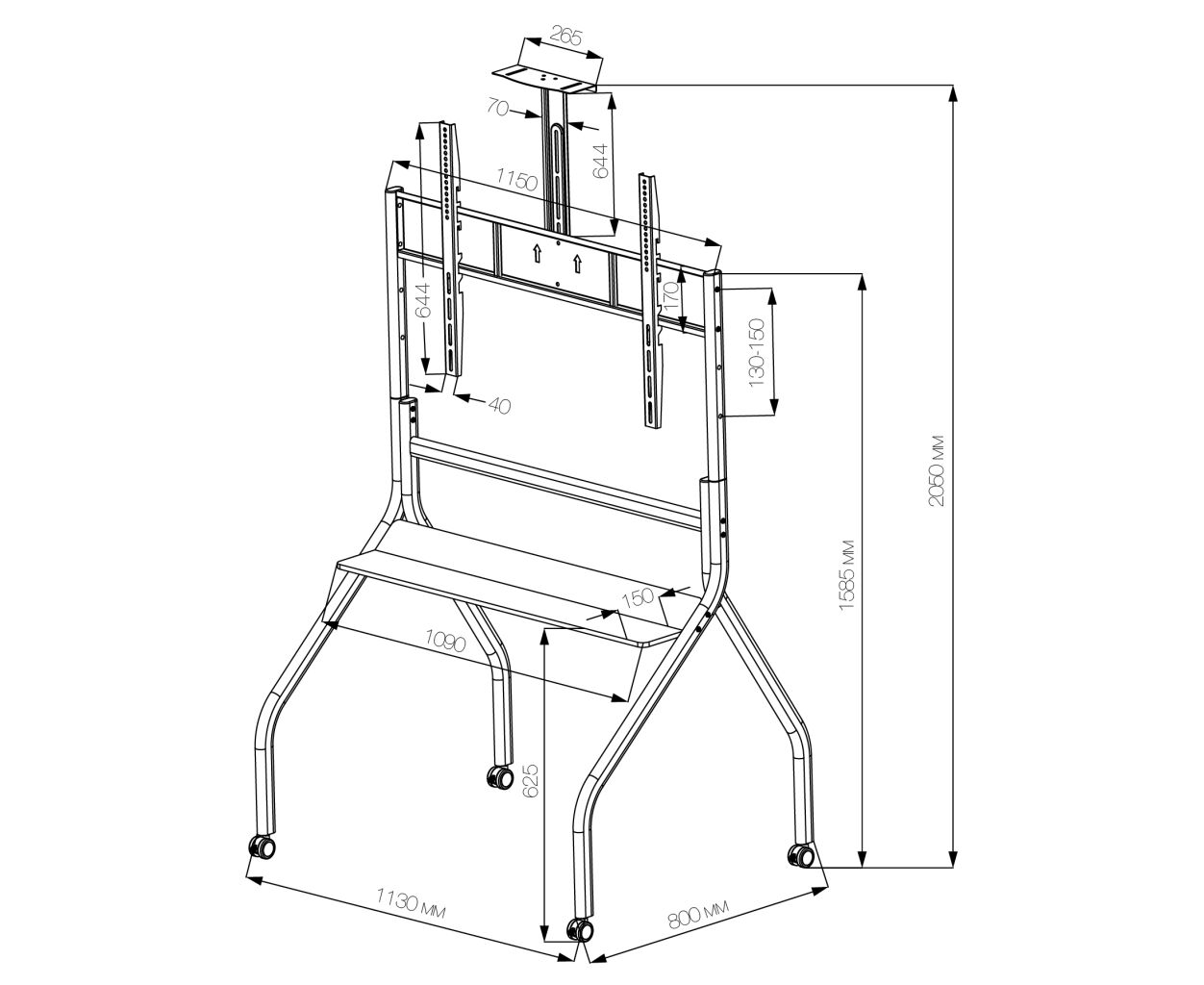 100 x 100, 200 x 200, 200 x 300, 200 x 400, 200 x 100, 200 x 600, 200 x 500, 300 x 200, 300 x 300, 300 x 400, 300 x 100, 300 x 600, 300 x 500, 400 x 200, 400 x 300, 400 x 400, 400 x 100, 400 x 600, 400 x 500, 500 x 200, 500 x 300, 500 x 400, 500 x 500, 500 x 600, 600 x 200, 600 x 300, 600 x 400, 600 x 500, 600 x 600, 700 x 400, 700 x 200, 700 x 300, 700 x 500, 700 x 600, 800 x 400, 800 x 200, 800 x 300, 800 x 500, 800 x 600, 900 x 200, 900 x 300, 900 x 400, 900 x 500, 900 x 600, 1000 x 400, 1000 x 500, 1000 x 600, 1000 x 200, 1000 x 300, мінімальна підтримувана діагональ - 55", максимальна підтримувана діагональ - 100", Регулювання - за висотою, Кількість ступенів свободи - 1, Вага - 23 кг, чорний
