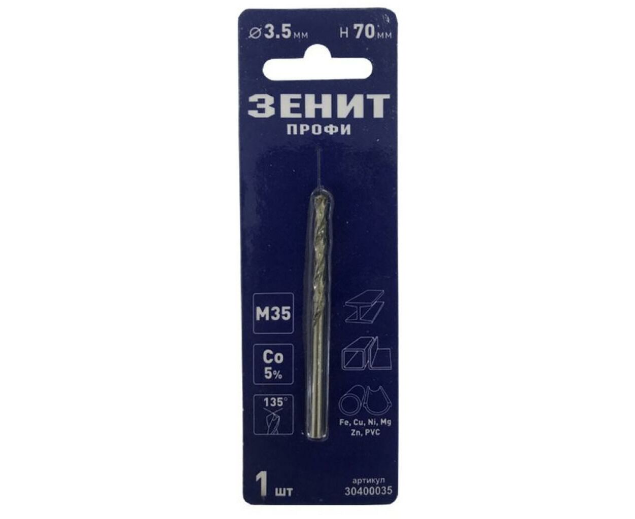 Опис Свердло Зеніт "ПРОФІ" по металу з кобальтовим покриттям 3.5х70 мм (30400035)