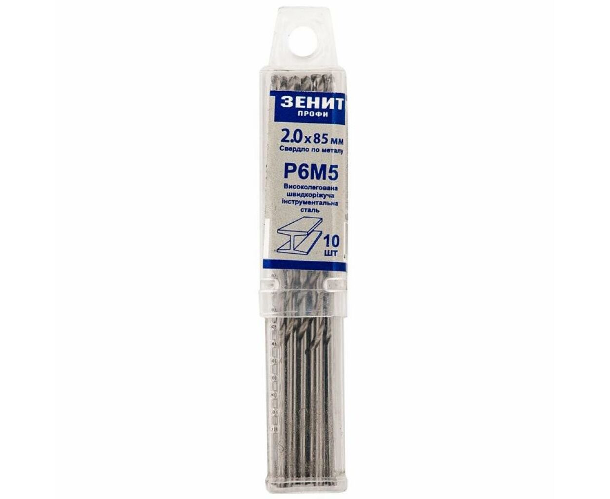 Свердло Зеніт "ПРОФІ" Р6М5 по металу довге 2.0х85 мм (10 шт) (30340020)