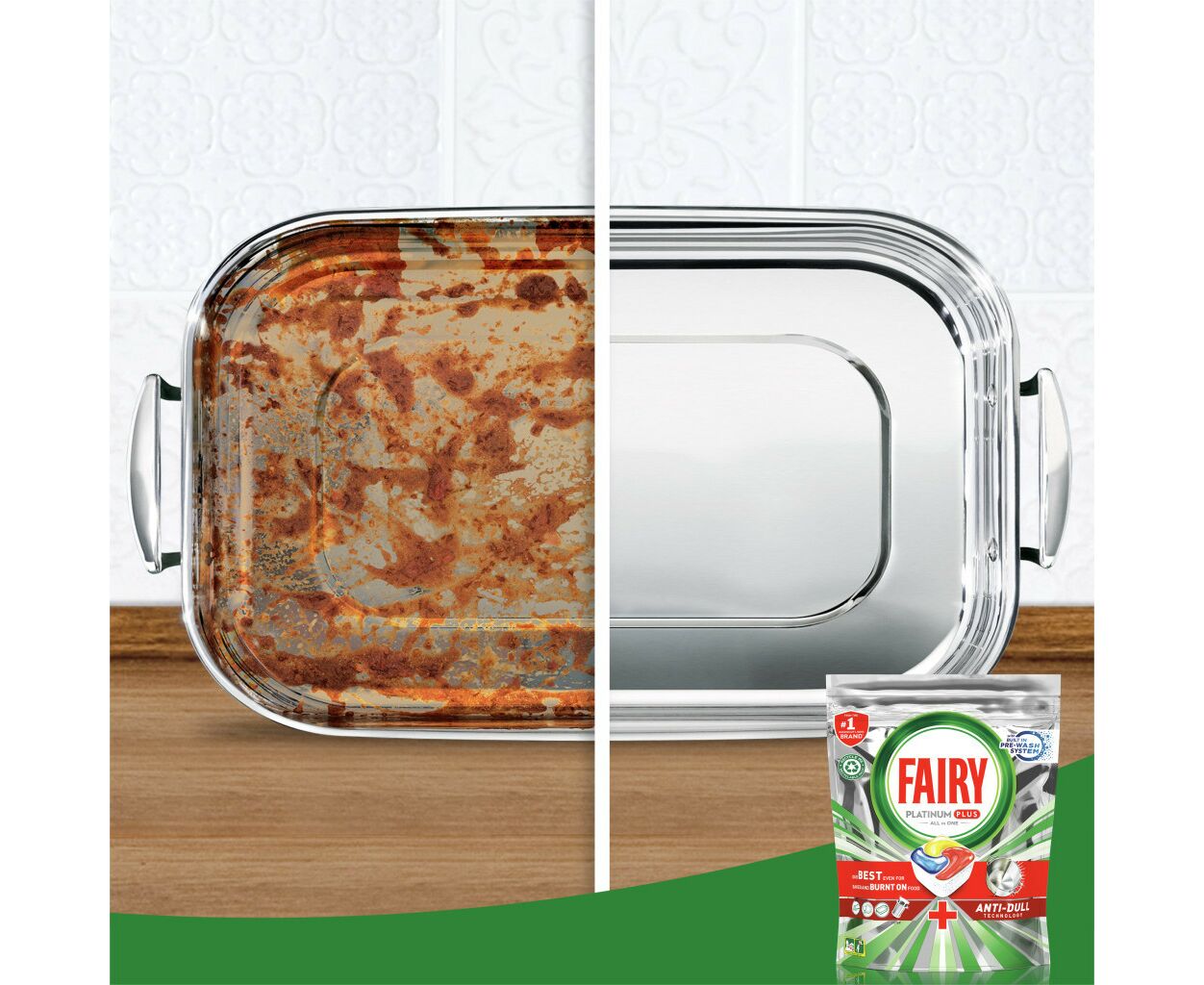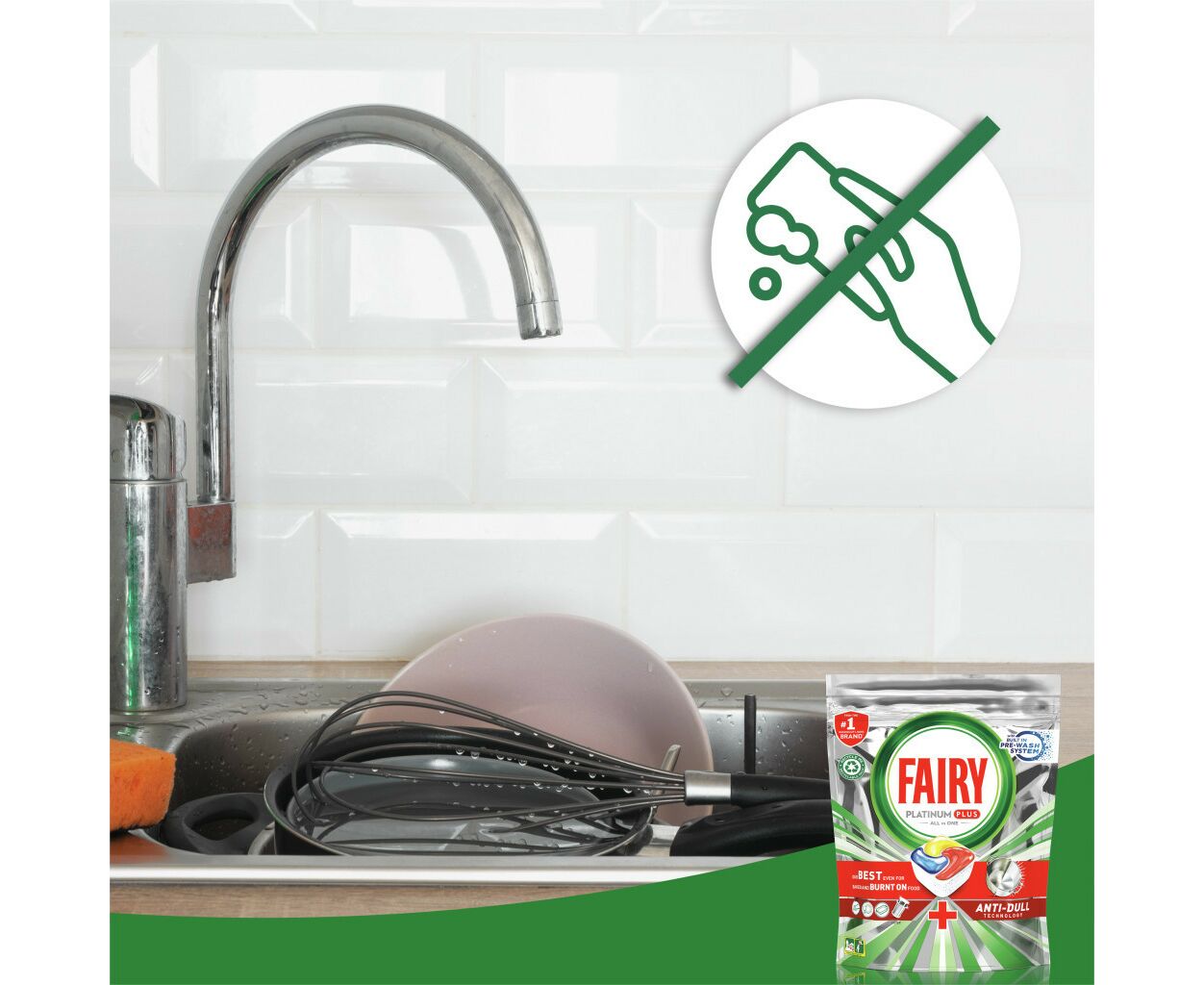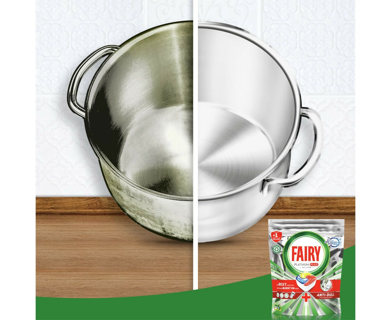 Капсули для посудомийної машини Fairy Platinum Plus Все-в-одному забезпечують найкраще очищення від Fairy і допомагають видалити навіть утворений з часом наліт, повертаючи посуду його первинний блиск. Fairy Platinum Plus обладнані вбудованою системою попереднього ополіскування і роблять цей крок за вас. З Fairy Platinum Plus вам не потрібно попередньо змивати залишки з посуду, що дає змогу ощадити воду та зробити миття посуду екологічнішим. Fairy об'єднує гель і порошок в одній потужній капсулі. Оболонка капсули швидко розчиняється у воді та підходить для коротких циклів миття посуду, адже засіб починає працювати негайно. А ще капсули дуже зручно використовувати. Не потрібно розгортати — просто помістіть їх у відсік посудомийної машини для мийного засобу.