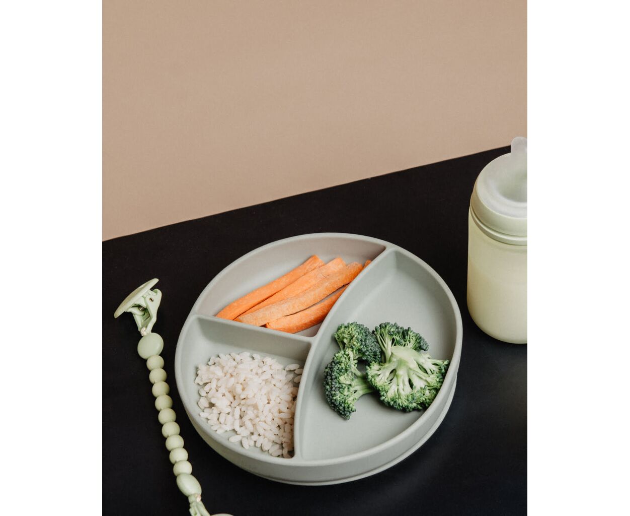 Опис Тарілка дитяча Suavinex Colour Essence силіконова для вводу прикорму на 3 секції, +6 міс. рожева (402916)