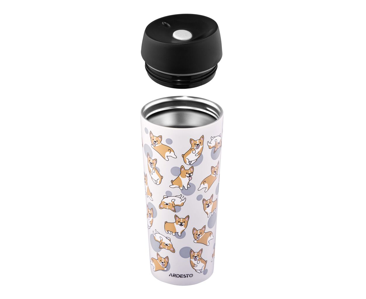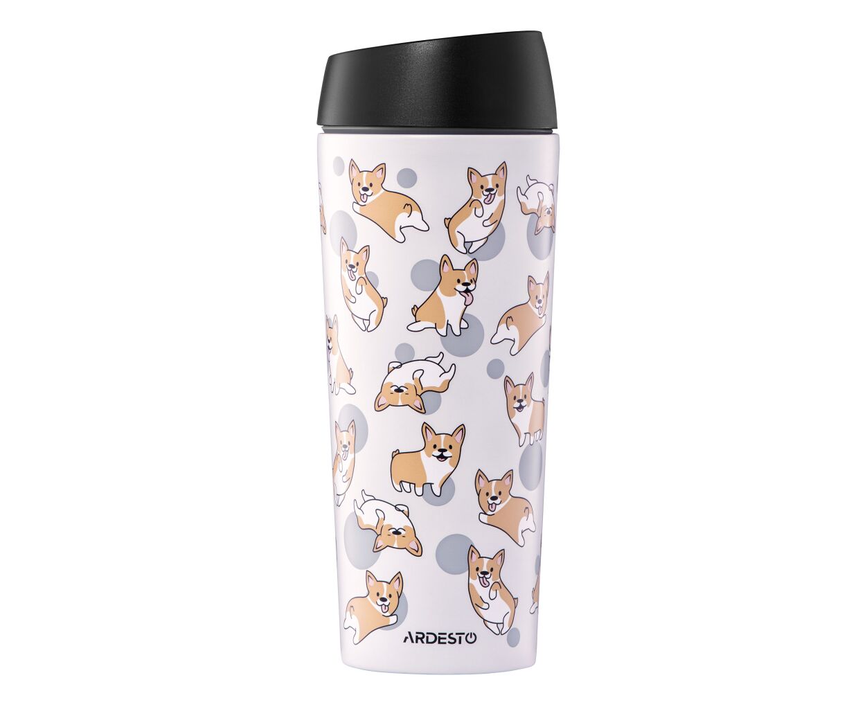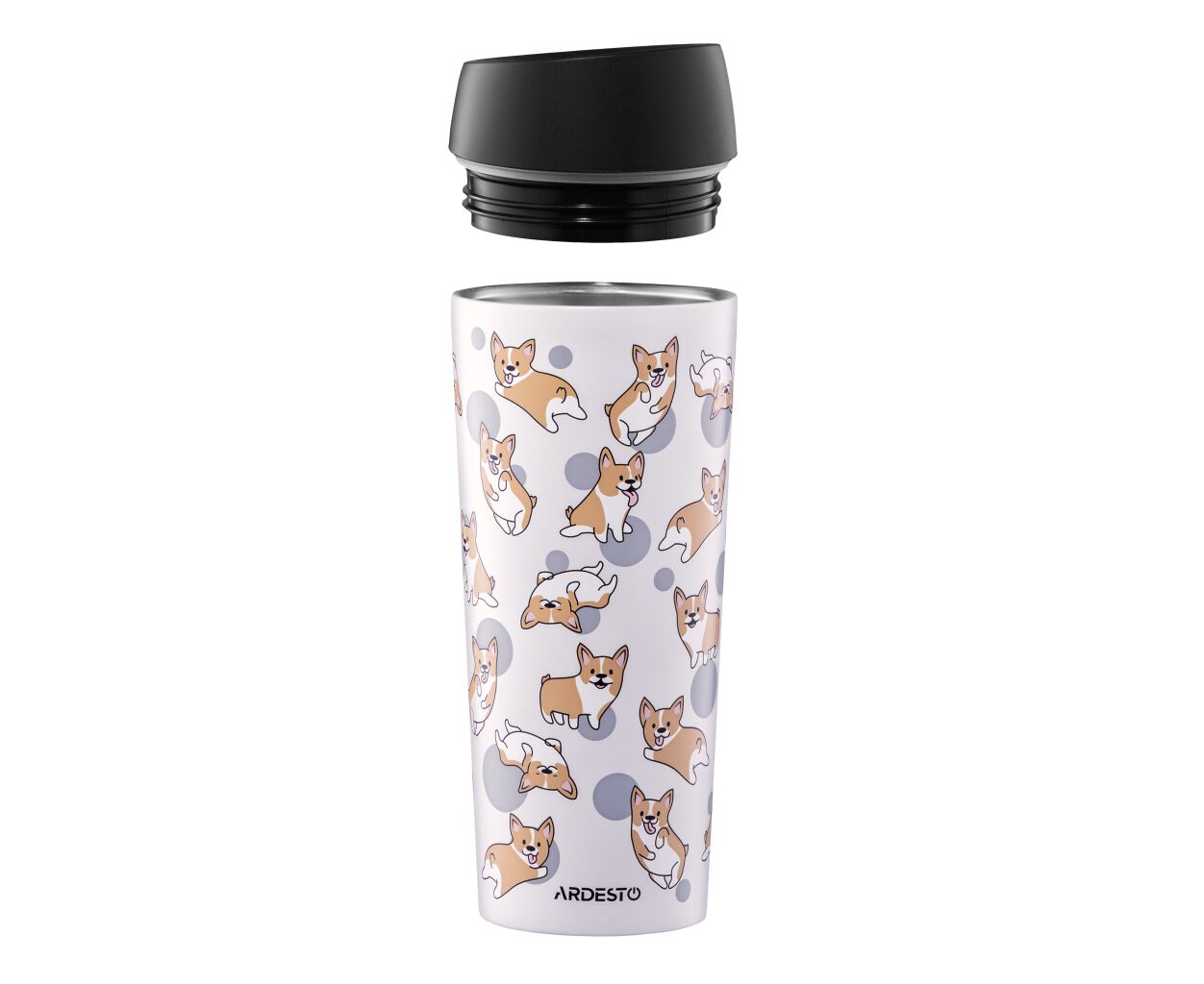 Термокружка Ardesto Coffee Time Animals Corgi 450мл, нержавіюча сталь, сірий (AR2645CR)