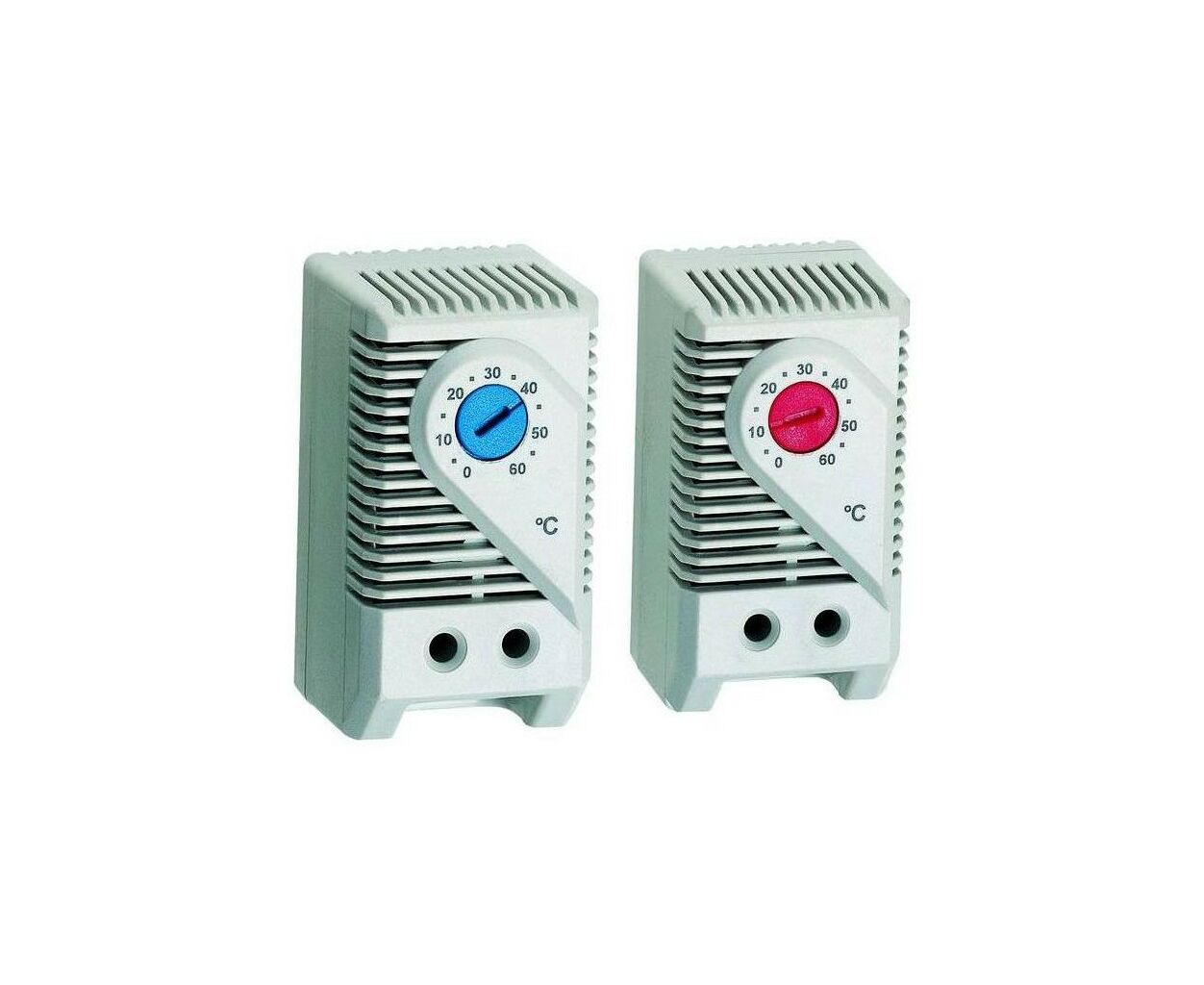 Нормально-розімкнутий контакт (NO) для регулювання вентиляторів з фільтром, теплообмінників, приладів охолодження або для включення сигнальних датчиків при перевищенні температури.