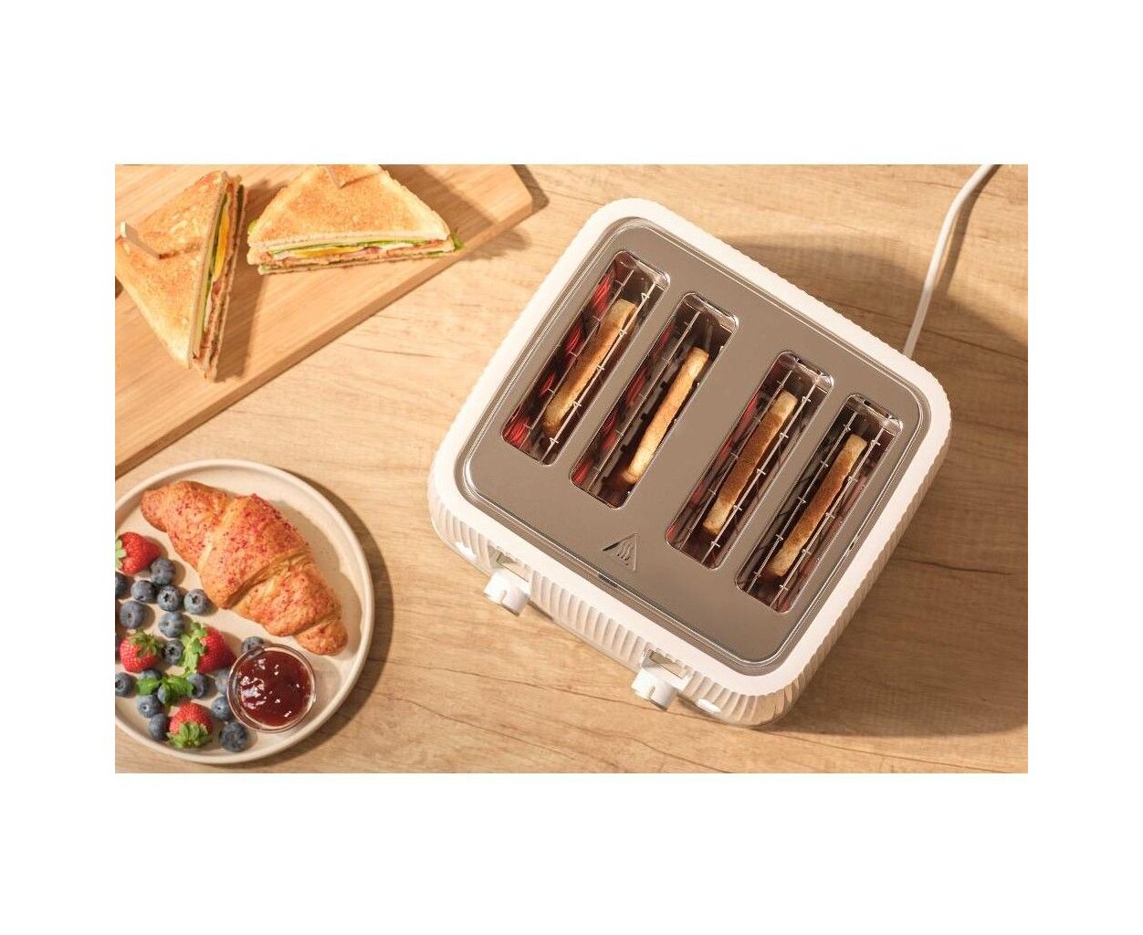 Широкий функціоналЗа допомогою тостера ви можете легко приготувати тости відповідно до ваших уподобань за допомогою 7 рівнів інтенсивності та 4 слотів для підсмажування. Ви можете використовувати решітки для підсмажування різних видів хліба. Завдяки 3 функціям він підігріває, підсмажує і розморожує хліб. За потреби є функція миттєвої зупинки.