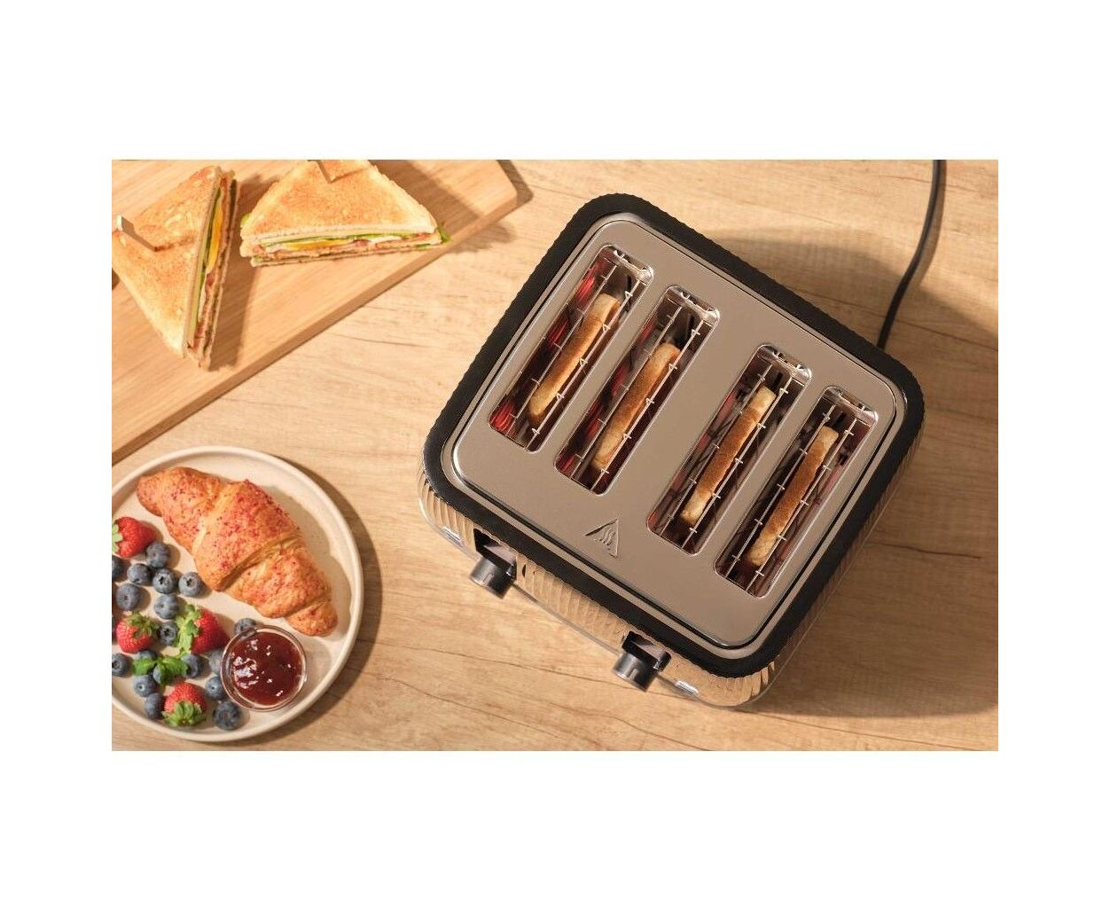 Широкий функціоналЗа допомогою тостера ви можете легко приготувати тости відповідно до ваших уподобань за допомогою 7 рівнів інтенсивності та 4 слотів для підсмажування. Ви можете використовувати решітки для підсмажування різних видів хліба. Завдяки 3 функціям він підігріває, підсмажує і розморожує хліб. За потреби є функція миттєвої зупинки.