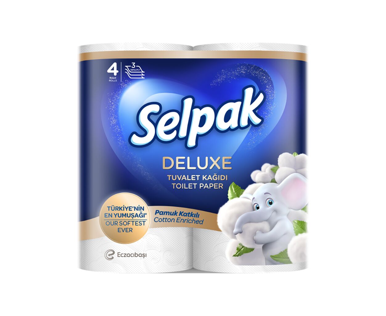 Опис Туалетний папір Selpak Deluxe Cotton Enriched 3 шари 4 рулони (8690530046566)