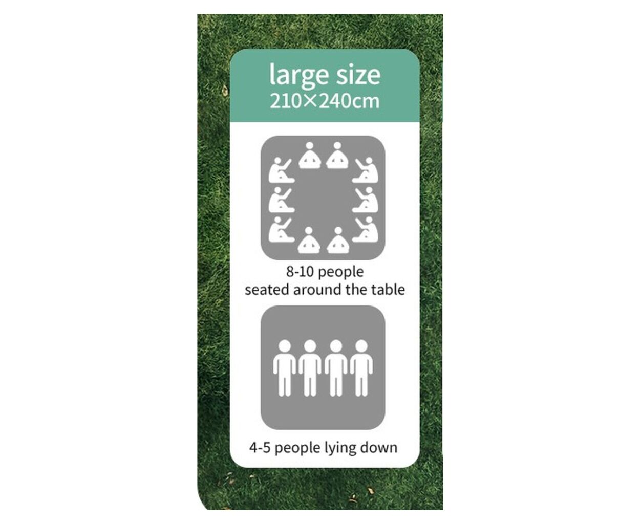 Килимок має великі розміри (210 х 240 см), що дозволяє комфортно розміститися великою компанією: до 4 осіб під час сну та до 10 осіб під час обіду. Водночас виріб складається до Ø25 х 42 см, що з урахуванням ваги 1,5 кг робить його зручним для транспортування.
