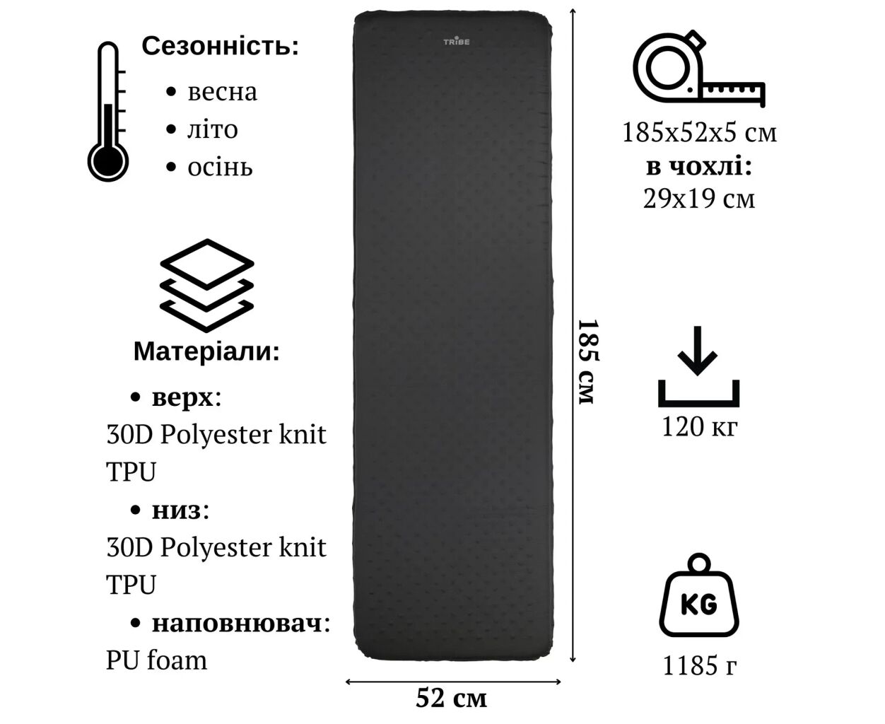 Опис Туристичний килимок Tribe Comfort Lite Rectangular 5 см grey (T-BB-0005-grey)