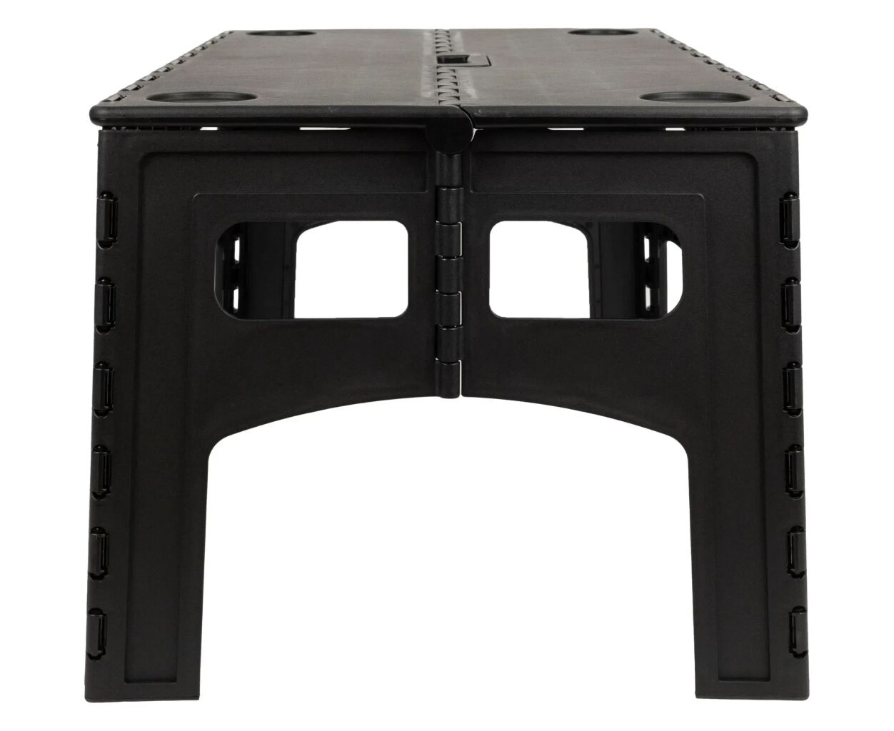 Компактний складаний стіл виготовлений з міцного поліпропілену. Має ручку для перенесення в складеному вигляді. Максимальне навантаження - 70 кг. Стане у нагоді рибалкам, мисливцям та просто під час відпочинку на природі. Завдяки своїй вазі та розмірам в складеному стані цей стіл зручно перевозити в багажнику автомобіля або ж зберігати вдома, він займає мінімум місця.Особливості:- складаний- компактний- ручка для перенесення- нековзкі вставки на ніжках- 4 заглиблення для стаканів