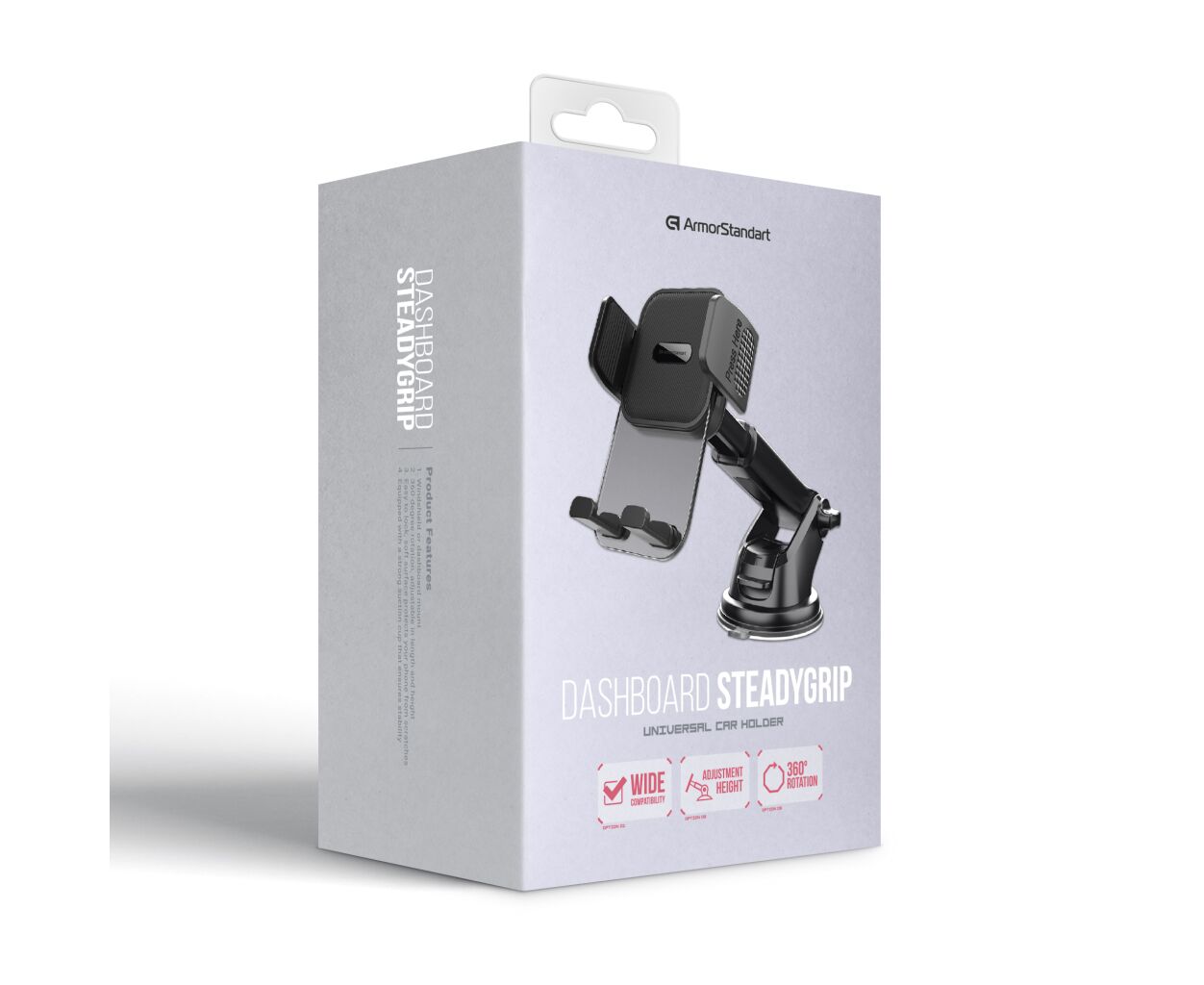 Опис Універсальний автотримач Armorstandart SteadyGrip Dashboard Black (ARM85339)