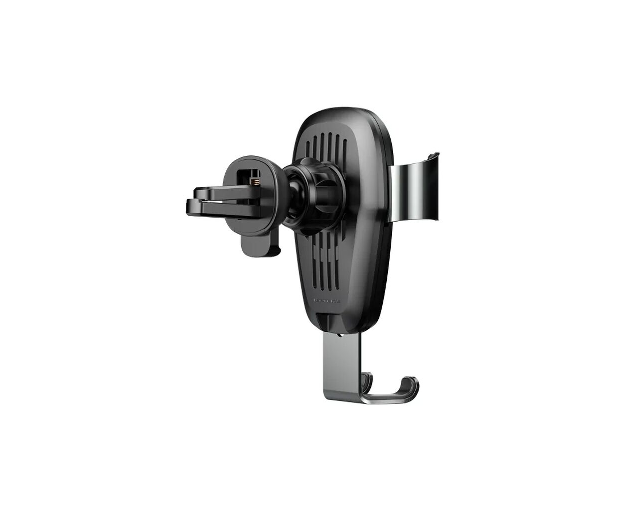 Baseus Metal Wireless Charger Gravity Car Mount є бездротовий зарядний пристрій, який кріпиться в дефлектор автомобіля, а також служить в якості тримача для телефону. Модель надійно фіксує смартфон з трьох сторін завдяки регульованим кріпленням, виключаючи випадання гаджета.