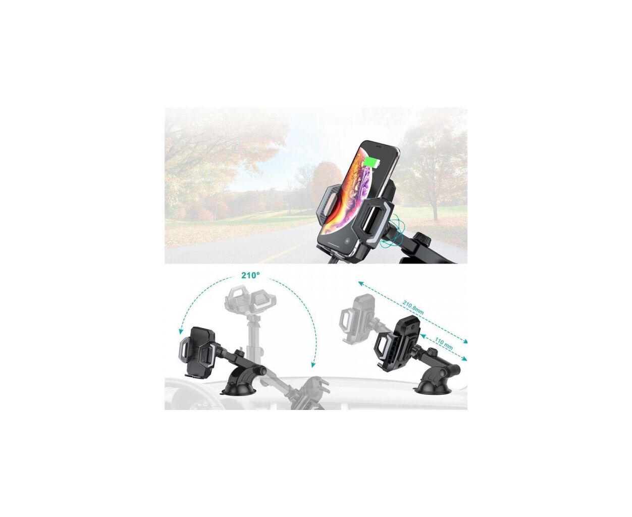- Розсувний механізм: Підходить для мобільних пристроїв шириною від 6.0 до 10.2 см, надійно утримуючи їх на місці.