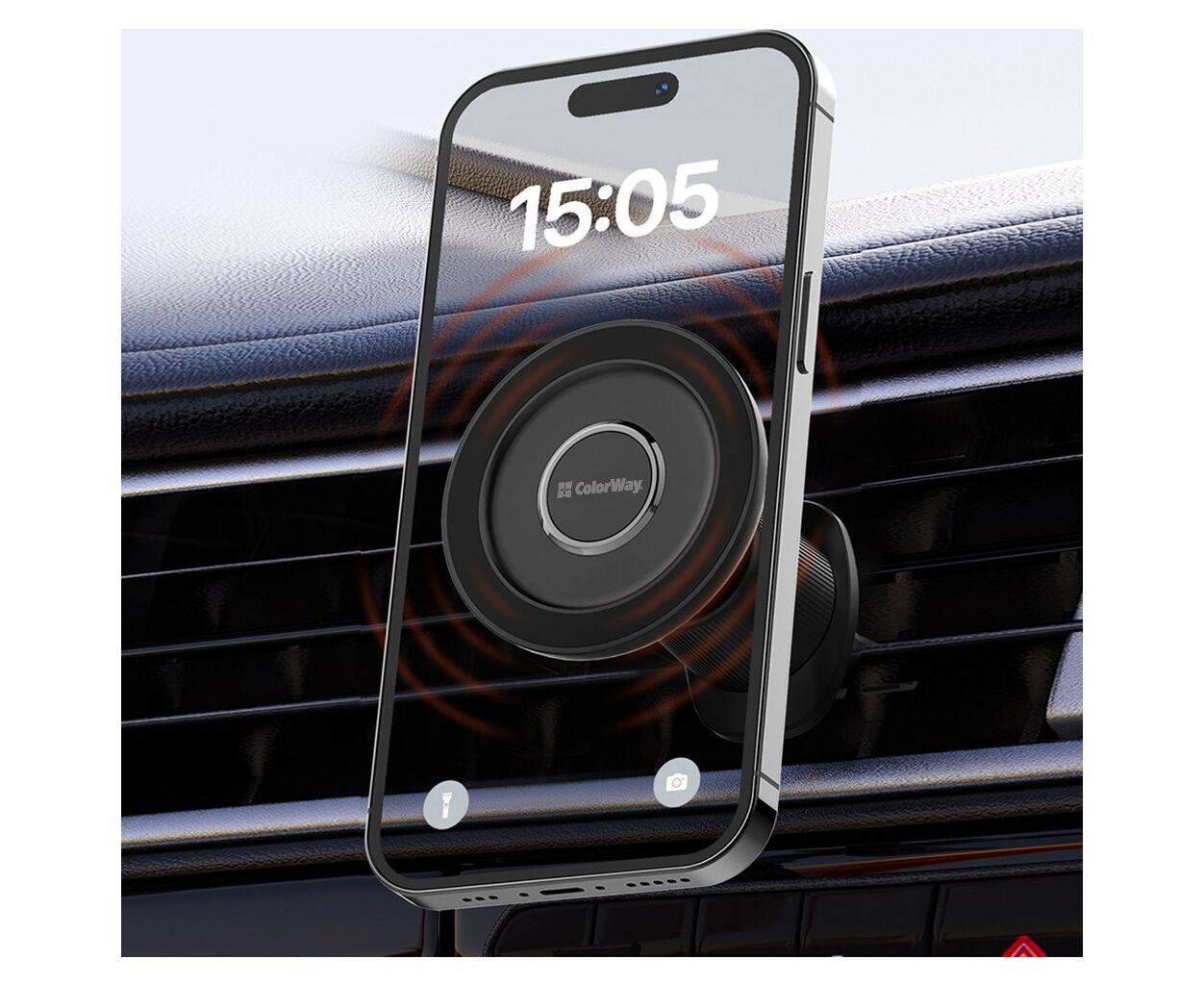 Опис Універсальний автотримач ColorWay Magnetic Air Vent-5 (360° rotation) (CW-CHM15-BK)