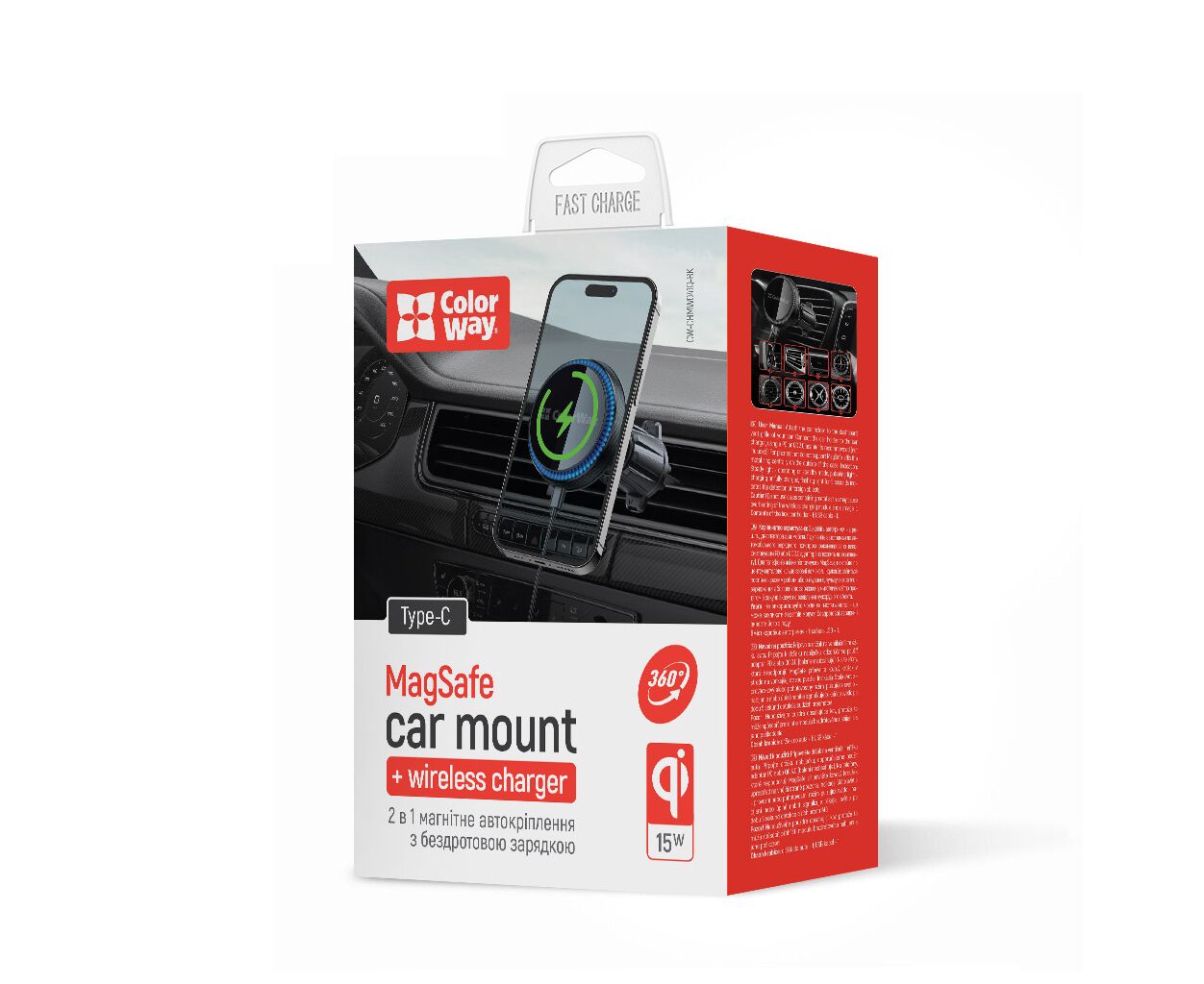 Опис Універсальний автотримач ColorWay MagSafe 360° Air Vent 15W Black (CW-CHMW041Q-BK)