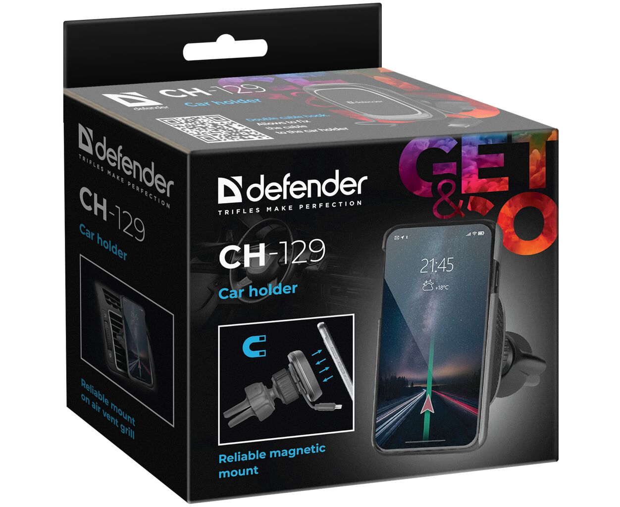Опис Універсальний автотримач Defender CH-129 магніт, на решітку вентиляції (29129)