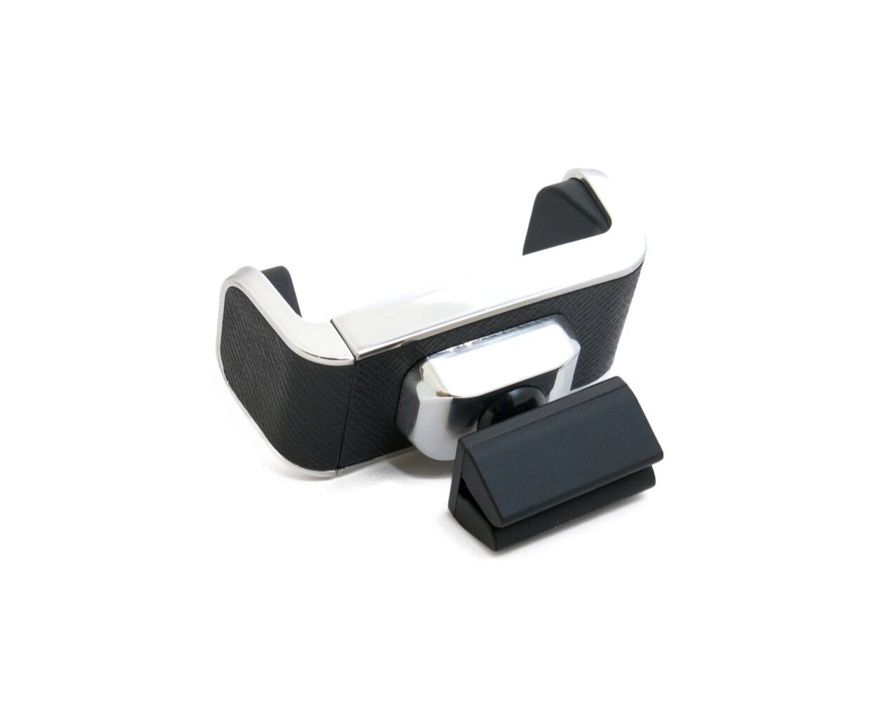 Автотримач можна використати в якості підставки для телефону на столі або стільниці. Простий і мінімалістський дизайн ідеально підійде до інтер'єру Вашого автомобіля. Високоякісна натуральна шкіра і стильна металева хромована обробка додасть розкіш і клас у Ваш автомобіль.