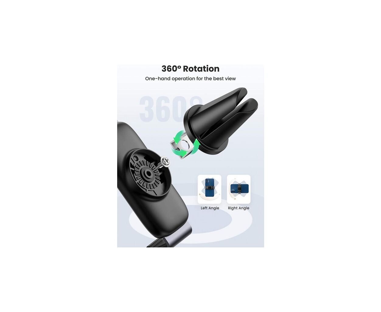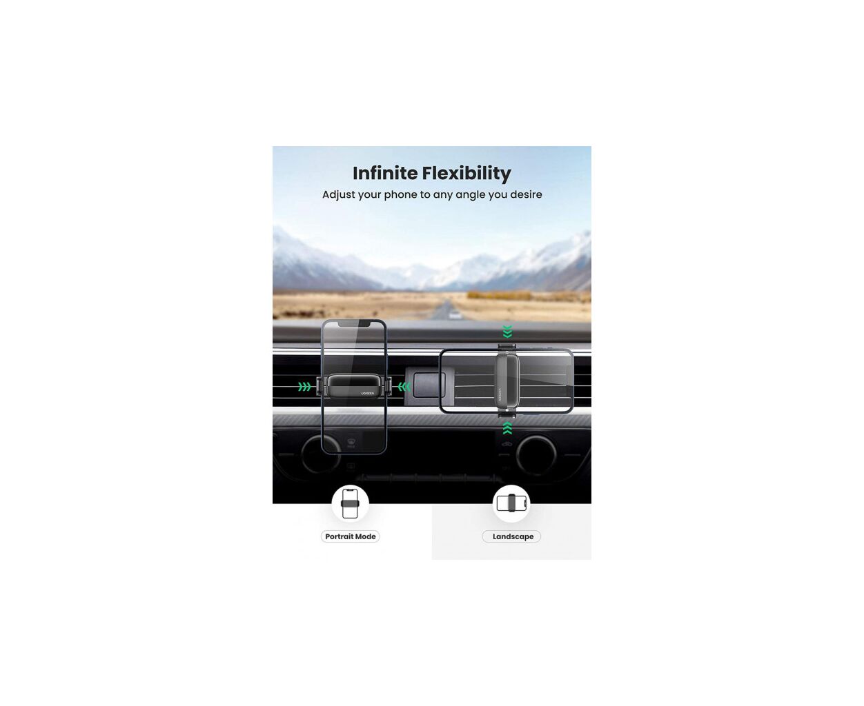 Завдяки розсувному механізму тримач Ugreen LP120 підходить для мобільних пристроїв шириною від 6,5 до 9 см і товщиною не більше 1,1 см. Легко переключайтесь з вертикального в горизонтальне положення. Можливість повороту на 360 градусів дозволяє налаштувати оптимальний кут огляду. Ви можете не хвилюватись, що подряпаєте вентиляційні решітки – виробник завбачливо обладнав кріплення тримача гумовими насадками.