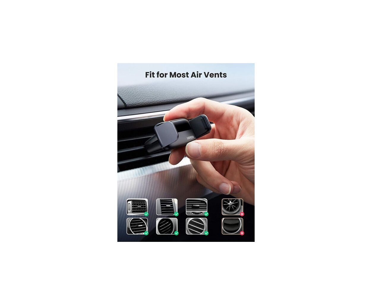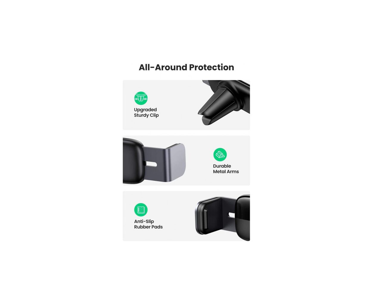 Автомобільний тримач для смартфона Ugreen LP120 (10422) – це необхідний для водіїв аксесуар, який кріпиться на вентиляційну решітку автомобіля та дозволяє за кермом автомобіля вільно спілкуватись, користуватись навігацією чи слухати музику з мобільного телефона. Просто покладіть свій смартфон у тримач, і він буде надійно утримуватись боковими фіксаторами.