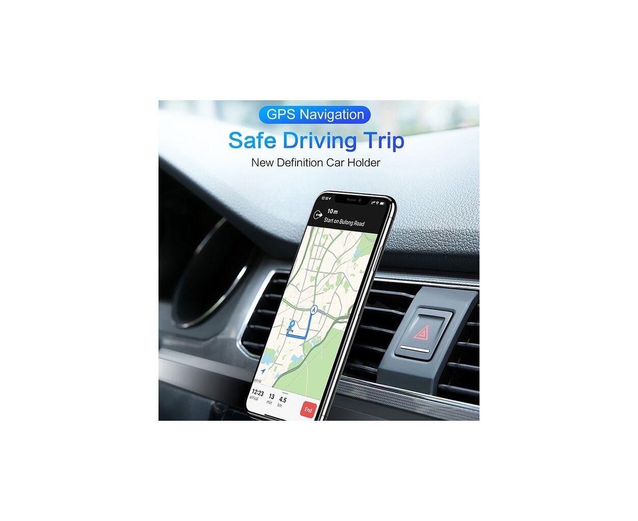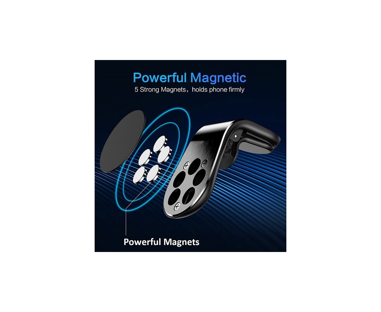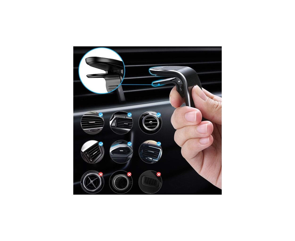 Надійна магнітна фіксація гаджета на тримачі передбачає установку спеціальної пластини під його задню кришку або під чохлом. Потужні магніти не чинять негативного впливу на смартфон. Пристрій призначений для кріплення на вентиляційну решітку в салоні авто.