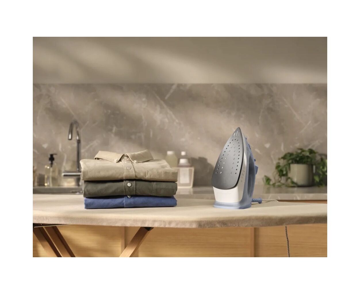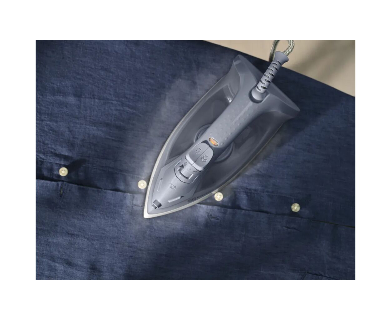Тип праски - праска з подачею пари, Потужність - 2000 Вт, матеріал підошви - non-stick, резервуар для води - 200 мл, система самоочищення, захист від перегріву, швидкість парового удару - 80 г/хв, вага - 0.8 кг, Колір - синій, сірий