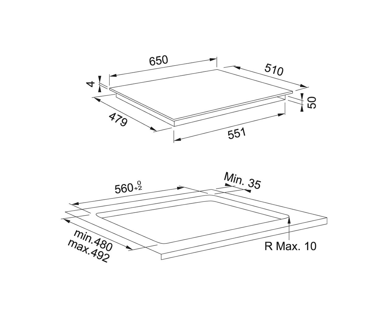 Тип поверхні - електрична, індукційні, склокераміка, кількість конфорок - 4, передня ліва 1.8 / 2.1 кВт х 180 мм, передня права 2.1 / 3 кВт х 210 мм, задня ліва 1.8 / 2.1 кВт х 180 мм, задня права 1.2 / 1.6 кВт х 145 мм, Управління - сенсорне, 220 В, 230 В, 240 В, Розміри ніші для вбудовування - 56 х 48 см, чорний