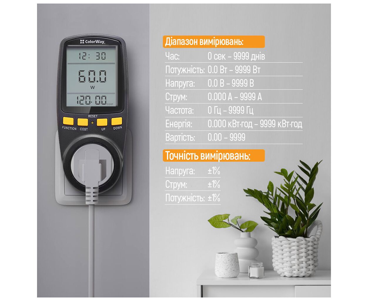Відгуки про Ватметр ColorWay цифровий 16A/3680W, black (CW-VM16-02D) від реальних покупців