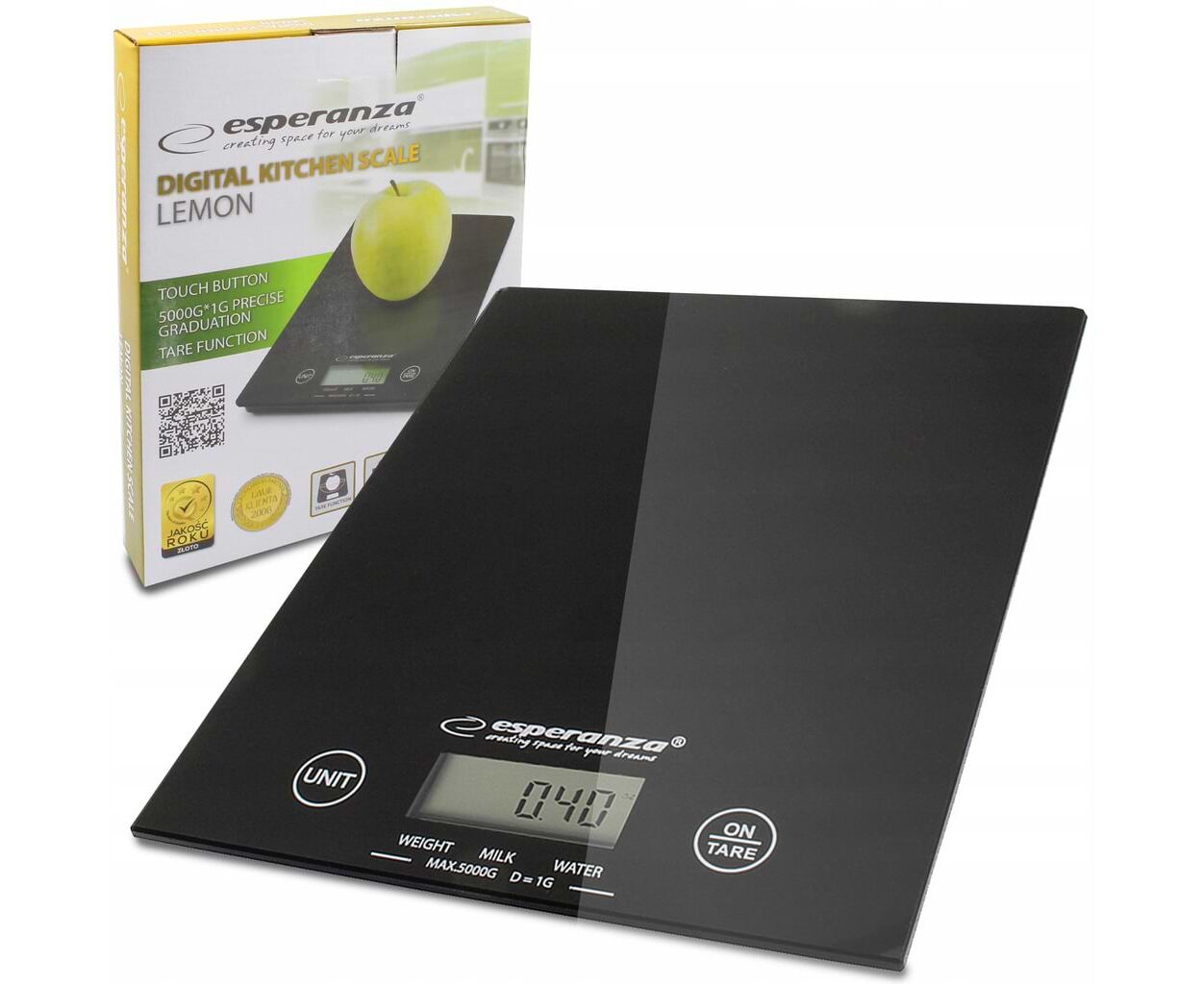 Ваги кухонні Esperanza EKS 002 K (EKS002K) - незамінний аксесуар на кухні будь-якої господині. Ці тонкі кухонні ваги стануть чудовою прикрасою інтер'єру будь-якої кухні, адже скляна платформа має привабливий вигляд, завдяки якому цими вагами користуватися особливо приємно. Ваги мають невеликий розмір і при цьому, нададуть можливість зважувати до 5 кг з точністю вимірювання до 1 грама. Тепер будь-який рецепт Вам буде під силу!
