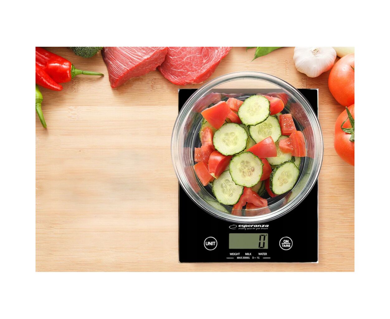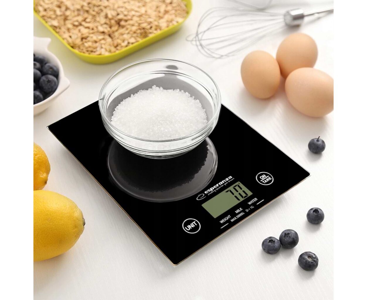 Ваги кухонні Esperanza EKS 002 призначені для зважування різноманітних продуктів харчування, в тому числі круп, фруктів і овочів. У рецептах нерідко, щоб уникнути розбіжностей, кількість того або іншого інгредієнта вказують саме в грамах, і, як правило, точне дотримання пропорцій забезпечує цілком гідний результат приготування їжі. Ваги мають великий легко читаний рідкокристалічний дисплей з великими цифрами, а також забезпечені додатковим набором функцій - функція автоматичного вимкнення, сенсорне керування. Варто відзначити, що ці ваги відносяться до типу «безчашних», тому оснащені корисною функцією скидання ваги тари.