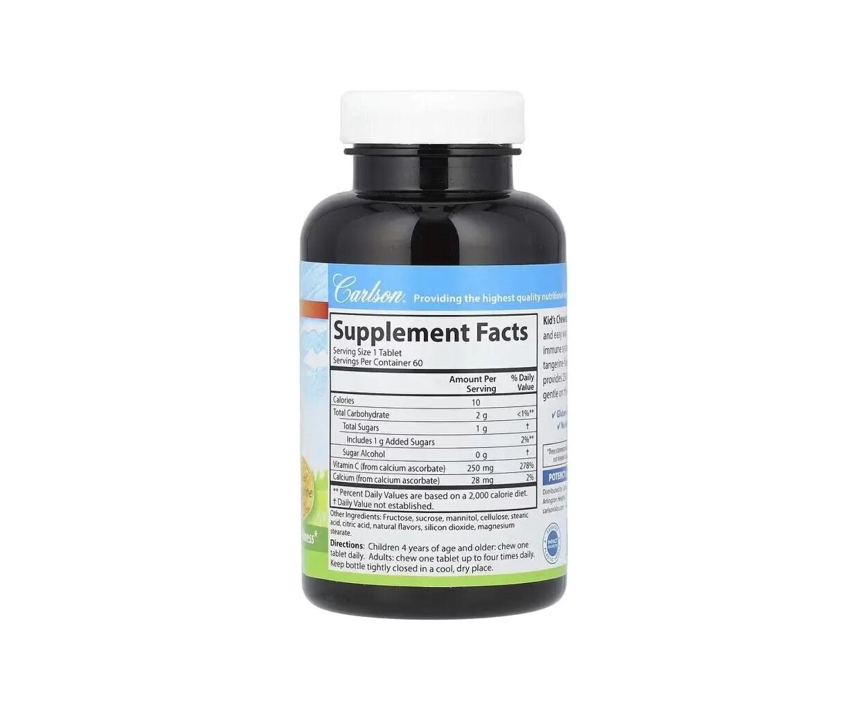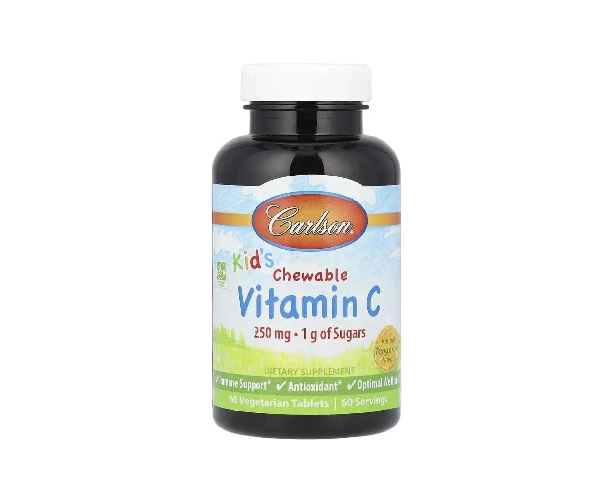 Опис Вітамінно-мінеральний комплекс Carlson Вітамін С для дітей, 250 мг, смак мандарину, Kid's Chewable Vitamin C (CAR-03100)