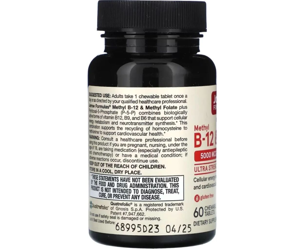 Опис Вітамінно-мінеральний комплекс Jarrow Formulas Вітамін B12 та метилфолат, смак вишні, Vegan Methyl B-12&Methyl Folate, 6 (JRW-18019)