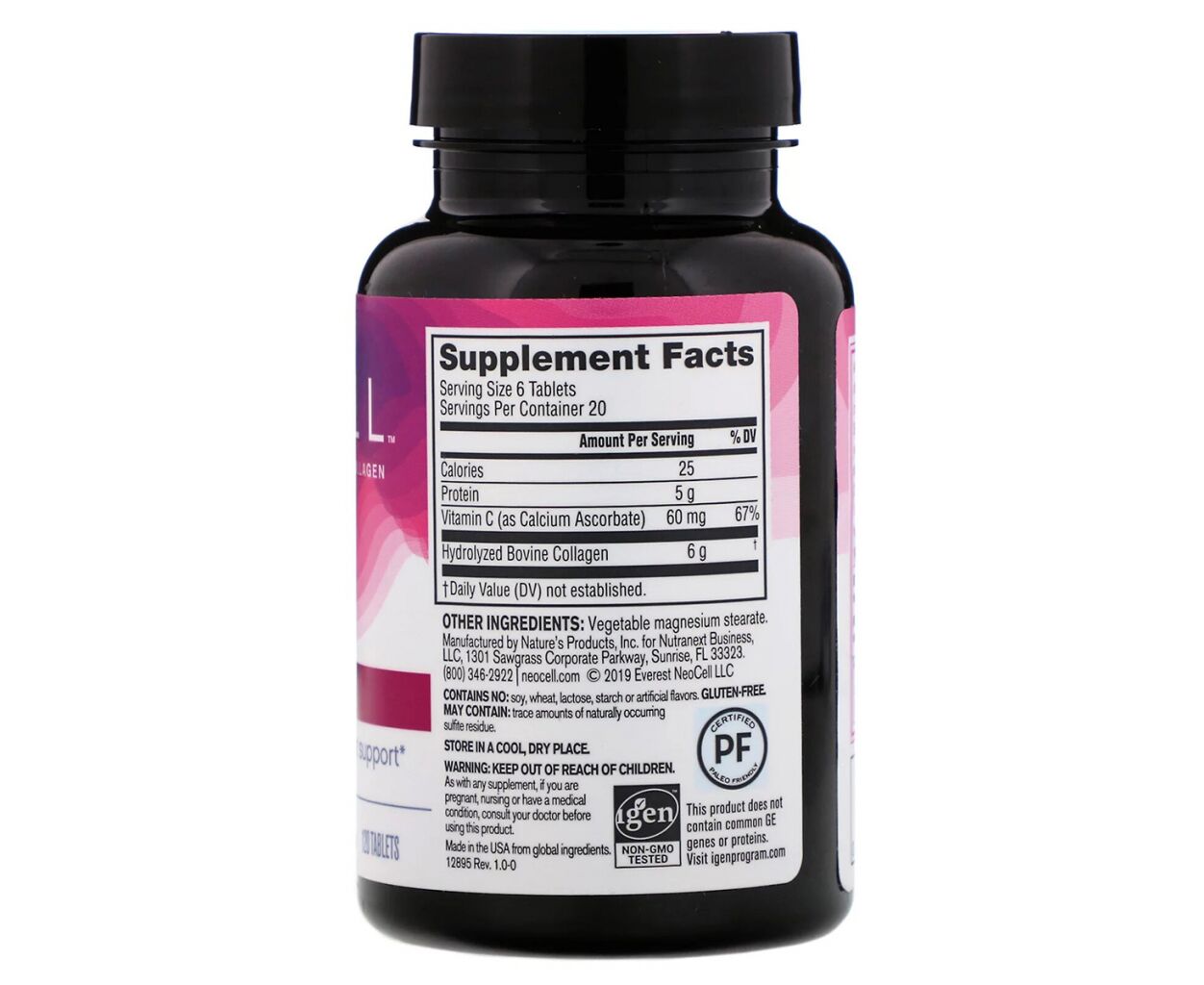 Характеристики Вітамінно-мінеральний комплекс Neocell Колаген + Вітамін С, Тип 1 & 3, NeoCell, 120 таблеток (NEL-12895)