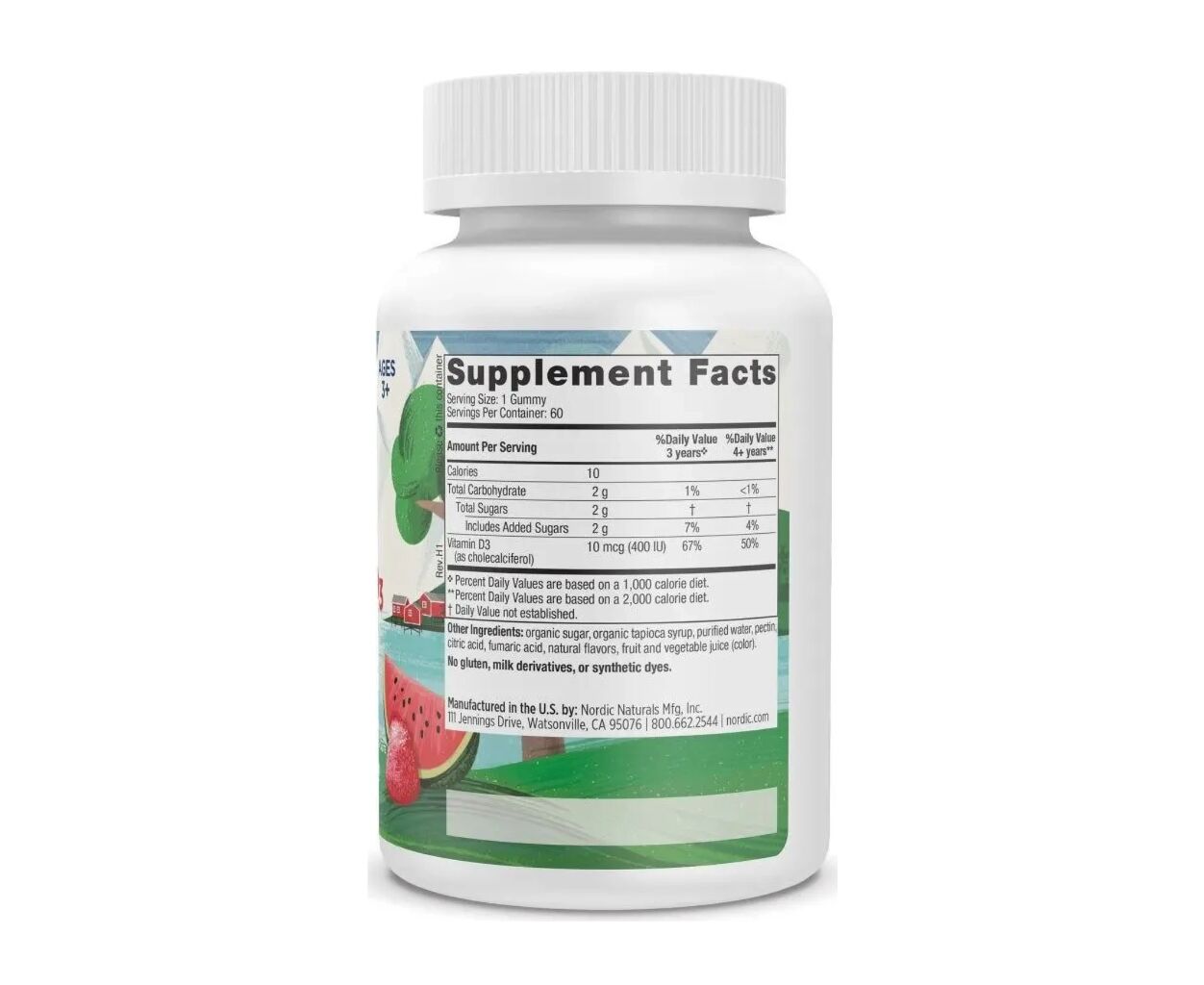 Характеристики Вітамінно-мінеральний комплекс Nordic Naturals Вітамін D3 для дітей, смак кавуна, 400 МО, Kids Vitamin D3 Gummies, 60 (NOR-31143)