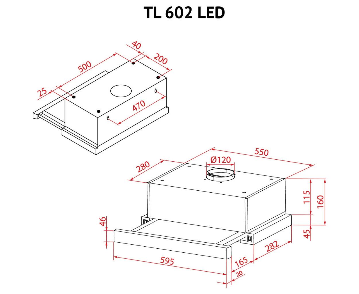 Опис Витяжка кухонна Perfelli TL 602 BL LED