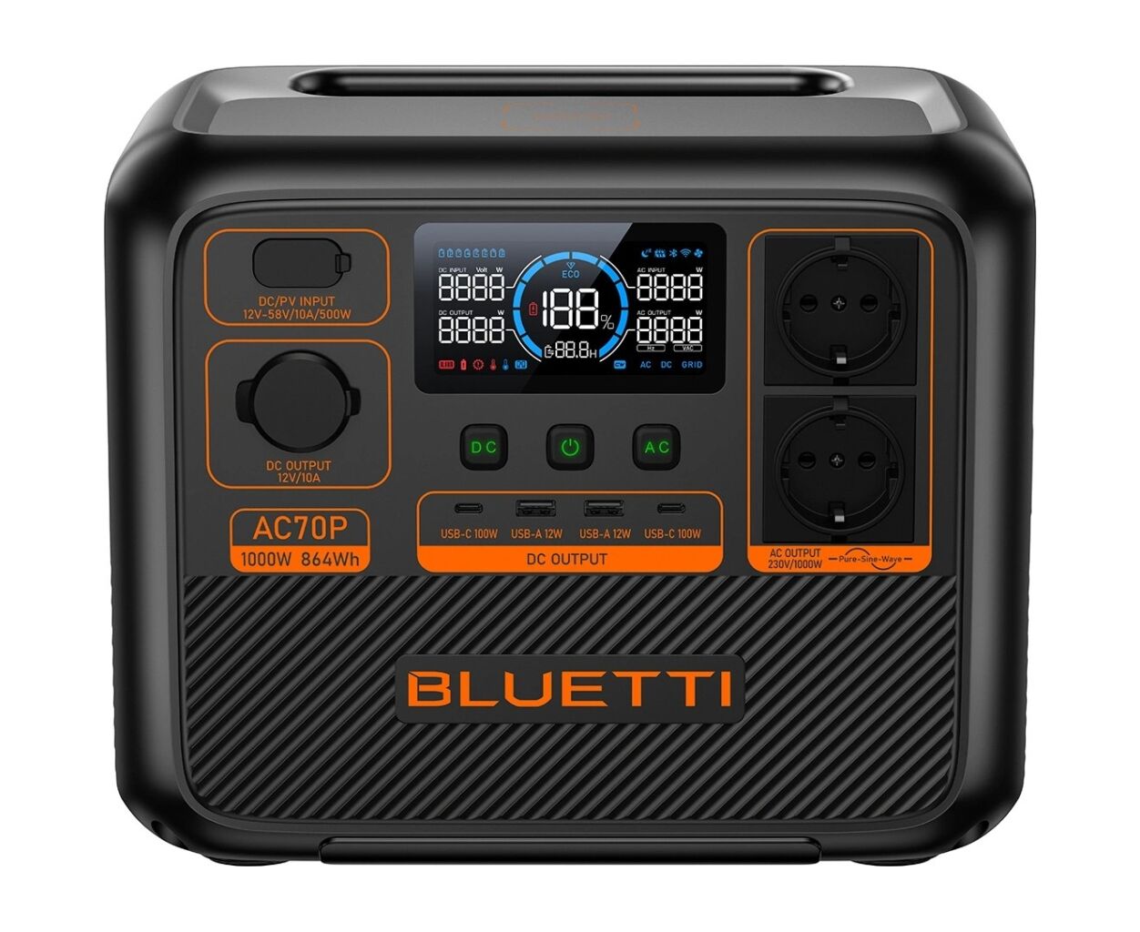 BLUETTI AC70P - це портативна електростанція, яка вражає своєю потужністю та інтелектуальними можливостями. З номінальною потужністю 1000 Вт та піковою 2000 Вт, ця електростанція стане невід'ємним компаньйоном для подорожей та використання в побуті.