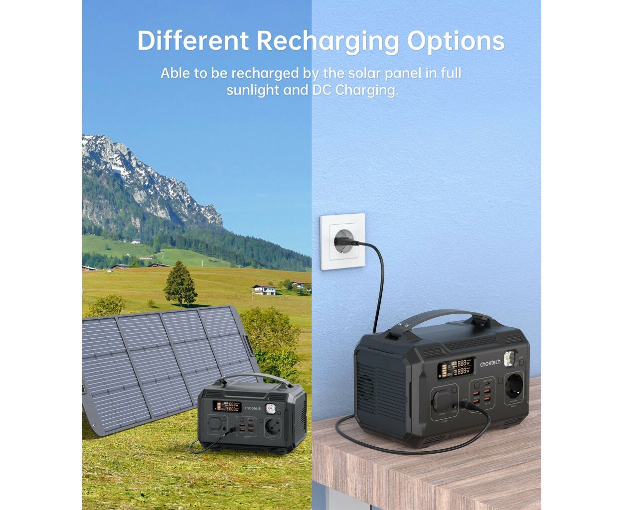 Choetech створив спосіб, щоб ви ніколи не розряджали акумулятор і завжди залишалися на зв’язку. Наша електростанція потужністю 500 Вт має технологію чистої синусоїдальної хвилі, яка безпечно живить електронні пристрої та забезпечує чисту безперебійну електроенергію, яка є такою ж надійною та безпечною, як і електроенергія, яку ви отримуєте вдома. Оснащений усіма необхідними портами для заряджання ваших пристроїв і приладів, а також зручною шкіряною ручкою, це наша найбільш портативна електростанція.