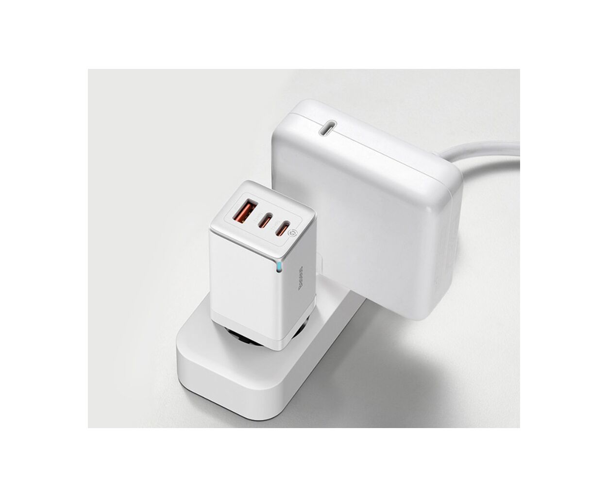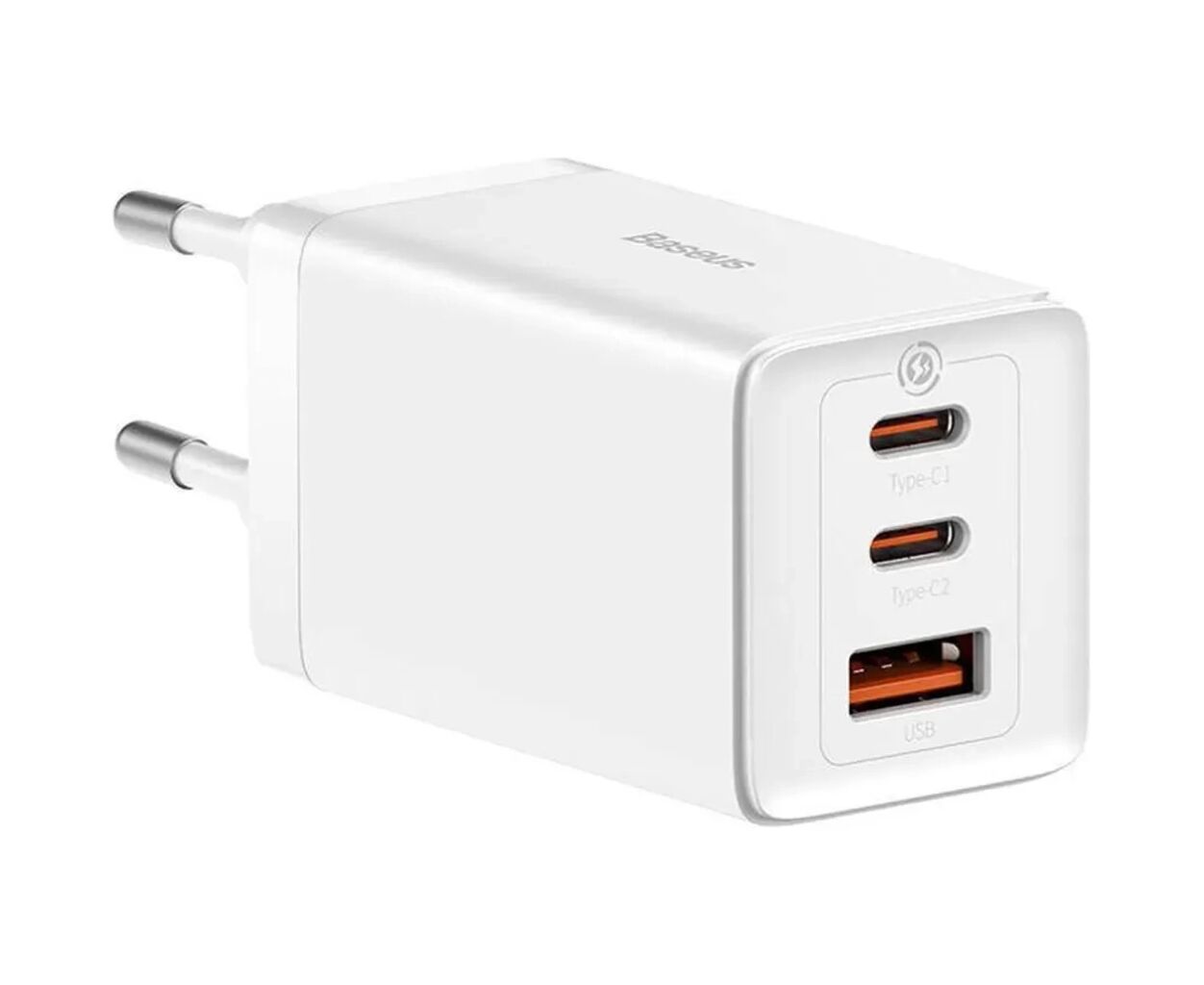 Зарядний пристрій Baseus 2xUSB-C 65W + 1xUSB GaN + cable USB-C to USB-C 100W 1.0m white (CCGP120202)