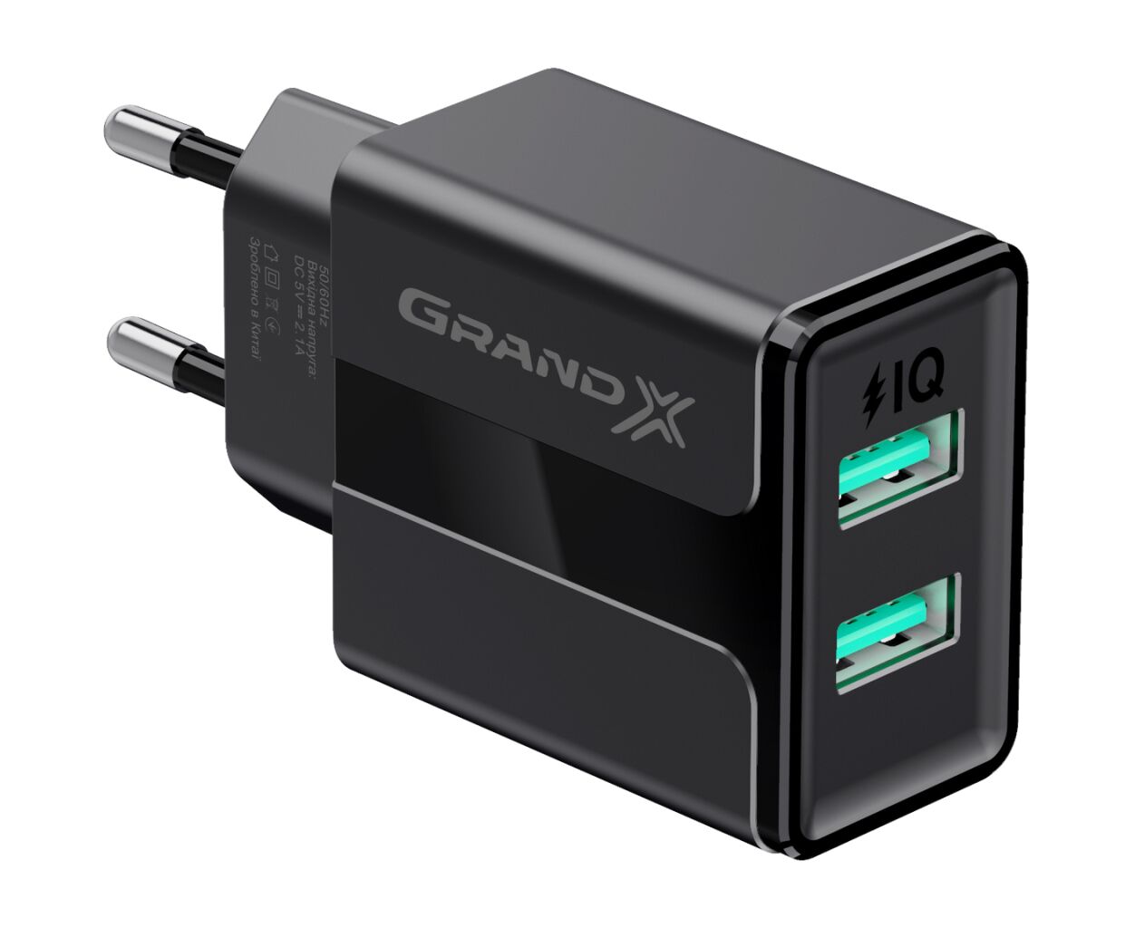 Зарядний пристрій Grand-X 5V 2.1A USB Black (CH-15B)