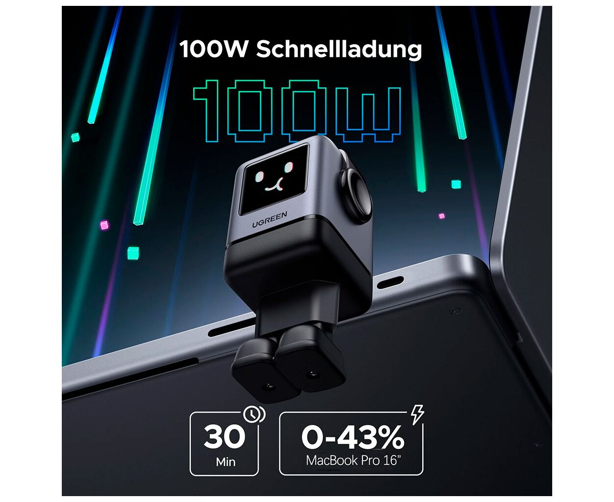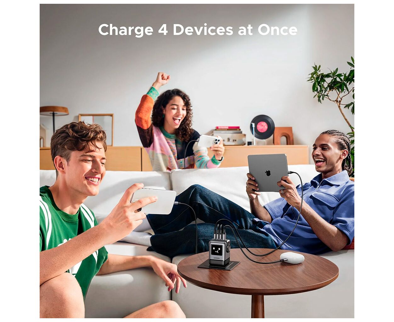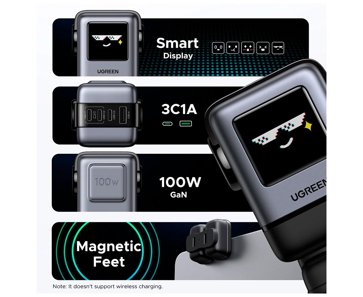 Опис Зарядний пристрій UGREEN 1xUSB + 3xUSB-C GaN 100W Robot X688 gray (45515B)