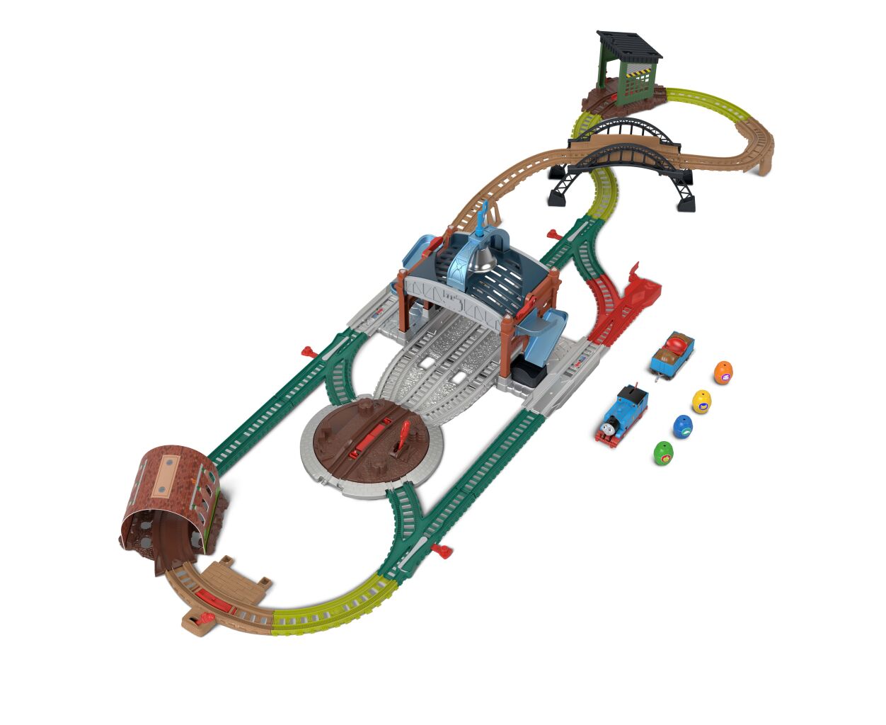 Ігровий набір Thomas and Friends Пригоди з бочками, випущений на честь 80-ї річниці легендарних історій, вражає своїми масштабами та безліччю варіантів взаємодії з інтерактивними елементами. З ним малюки зможуть створити власні пригоди для улюбленого паровозика та його друзів.